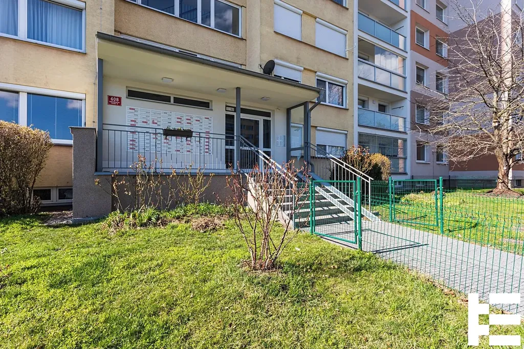 Byt, který je umístěný v 11.NP s výtahem, disponuje příjemným a světlým obývacím prostorem s kuchyňským koutem. Kuchyň je osazena sklokeramickou deskou, troubou, myčkou a digestoří. Koupelna nabízí možnost umístění pračky. Samostatná toaleta. Na chodbu lze umístit úložné skříně a komody.