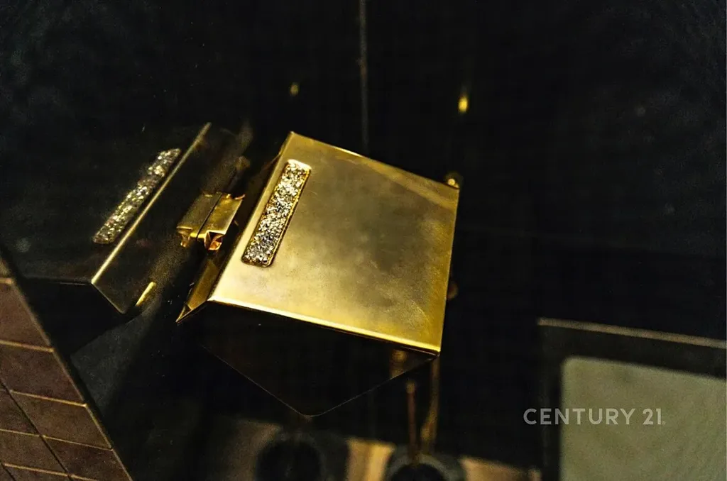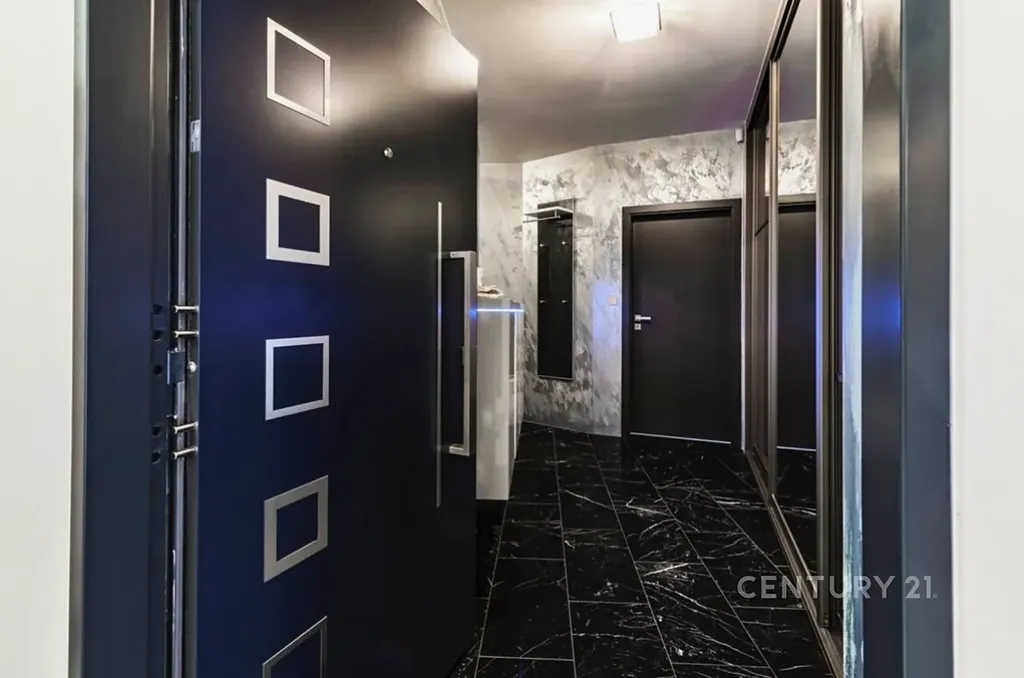 Samozřejmostí jsou nadstandardní materiály: lesklé benátské štuky, italský mramor v předsíni, rozsáhlá skleněná skříň se zrcadlem, skleněné dotykové vypínače a zásuvky. Antracitová koupelna s podsvícenými nikami a rohovou vanou je skutečnou třešničkou na dortu.