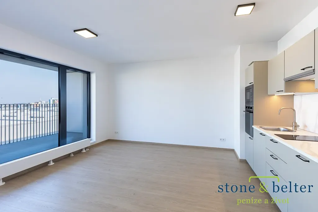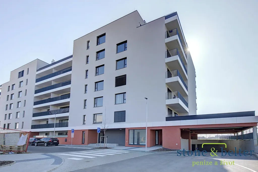 Byt zaujme světlým a vzdušným interiérem, prostornou vstupní chodbou, velkoryse řešenou koupelnou a příjemným propojením obytné části s venkovním prostorem. Hlavní obytná místnost je propojena s lodžií o velikosti cca 12,5 m² prostřednictvím velkoformátového proskleného portálu, který zajišťuje dostatek denního světla a příjemnou atmosféru.