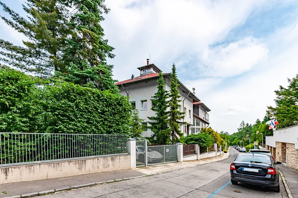 Krásně zrekonstruovaný byt o celkové užitné ploše cca 240 m² (interiér 193,7 m² + terasa 38 m² + sklep 5,8 m²) se nachází ve vile se 12 jednotkami, výtahem a parkováním. Klidná slepá ulice přímo u lesa, jen 10 minut od centra Prahy.