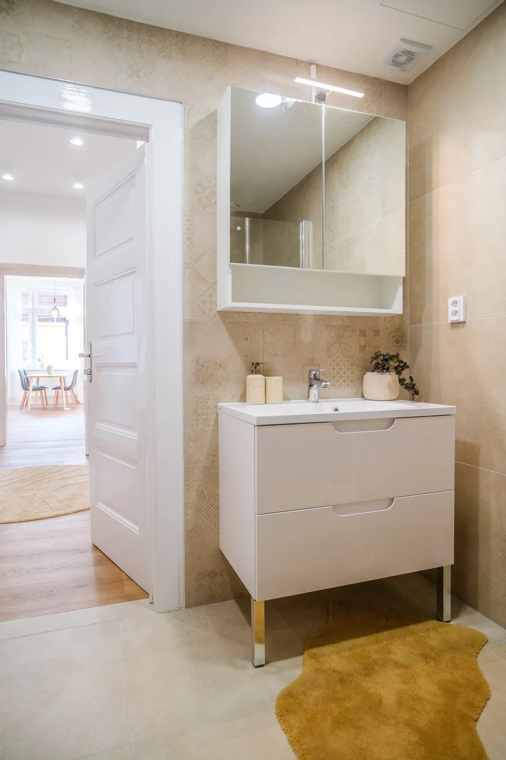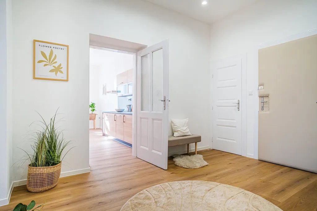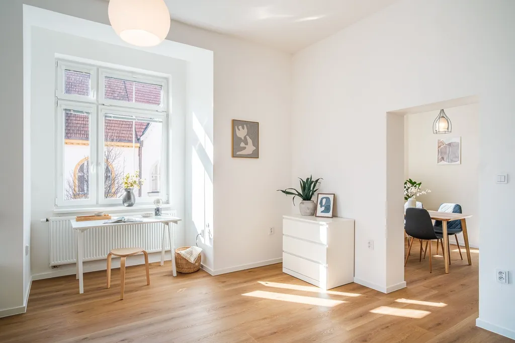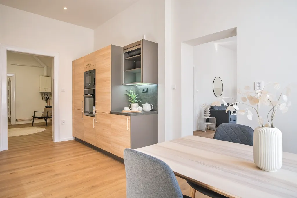 Byt prošel kompletní a velmi nákladnou generální rekonstrukcí, která byla provedena skutečně poctivě a bez kompromisů. Rekonstrukce zahrnovala vše od podlah až po stropy – nové omítky, kompletní rozvody vody, elektroinstalace, okruhy vytápění i odpadů, kuchyňskou linku na míru, kvalitní podlahy a celkové zpracování, které citlivě propojuje moderní standard bydlení s charakterem historického domu a lokality. Výsledkem je mimořádně útulný a reprezentativní domov, připravený pro novou rodinu bez nutnosti dalších investic.