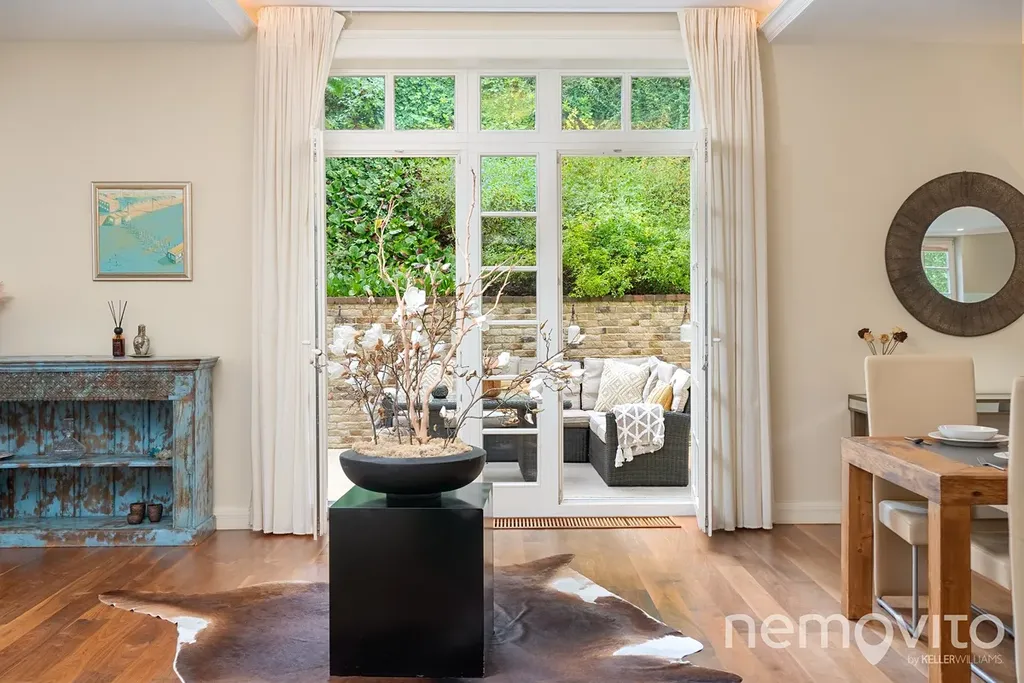 Dominantu domu tvoří velkorysý obývací pokoj, jehož plocha je v součtu téměř 100 m2, a který je vybaven několika francouzskými okny. Ty v rámci celého domu poskytují úžasné průhledy do zelené zahrady, která je pochopitelně řešena s ohledem na maximalizací soukromí. Útulnou atmosféru vytváří nejen velká okna, ale také masivní podlahy z amerického ořechu nebo celkově střídmé, avšak kvalitní pojetí interiérů. V obývacím pokoji nechybí krb a rozměrné okno na terasu za domem. Ta je díky terénnímu rozdílu zcela oddělena od sousední ulice, a není na ni vidět ani z bočních pohledů. Obývák poskytuje prostor pro rozměrnou pohovku a především skutečně nevídaně velkou jídelnu. Prostor pojme i desítku hostů. Kuchyně je bokem, je možné ji oddělit, a její plocha je 15 m2 s tvarem linky do U.