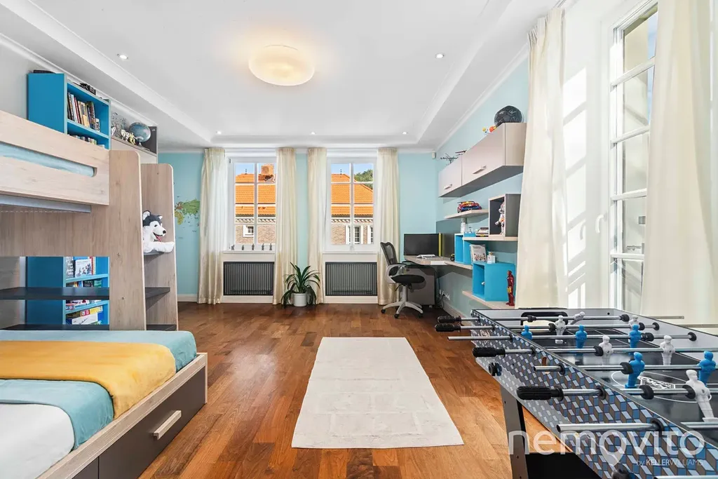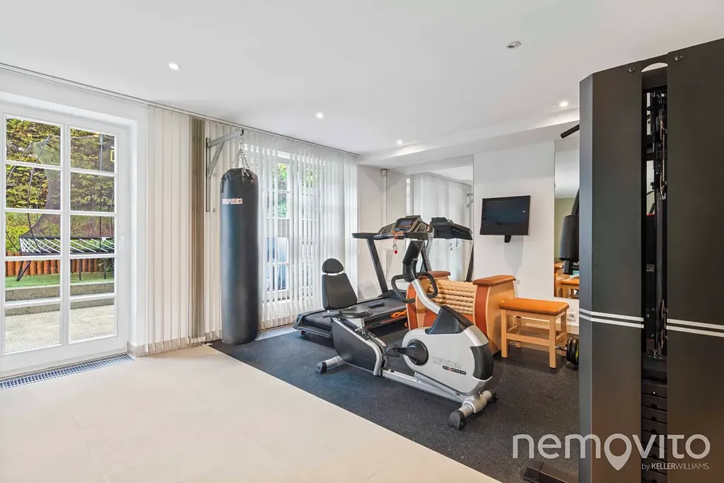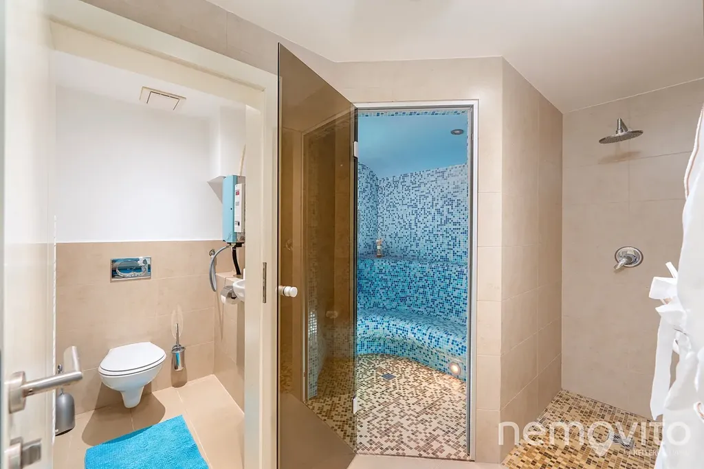 At the very bottom there is an indoor swimming pool (8 m) with a gym, steam bath and wellness. It is possible to exit directly to the southern terrace. Sarecke valley is a unique location, with the street lying to the side of the road and hidden from public view. An unprecedented feature is the accessibility of the center within a few minutes and a good connection to the airport. The house is also perfectly located for nearby international schools. I will be happy to send you a link to the listing website.