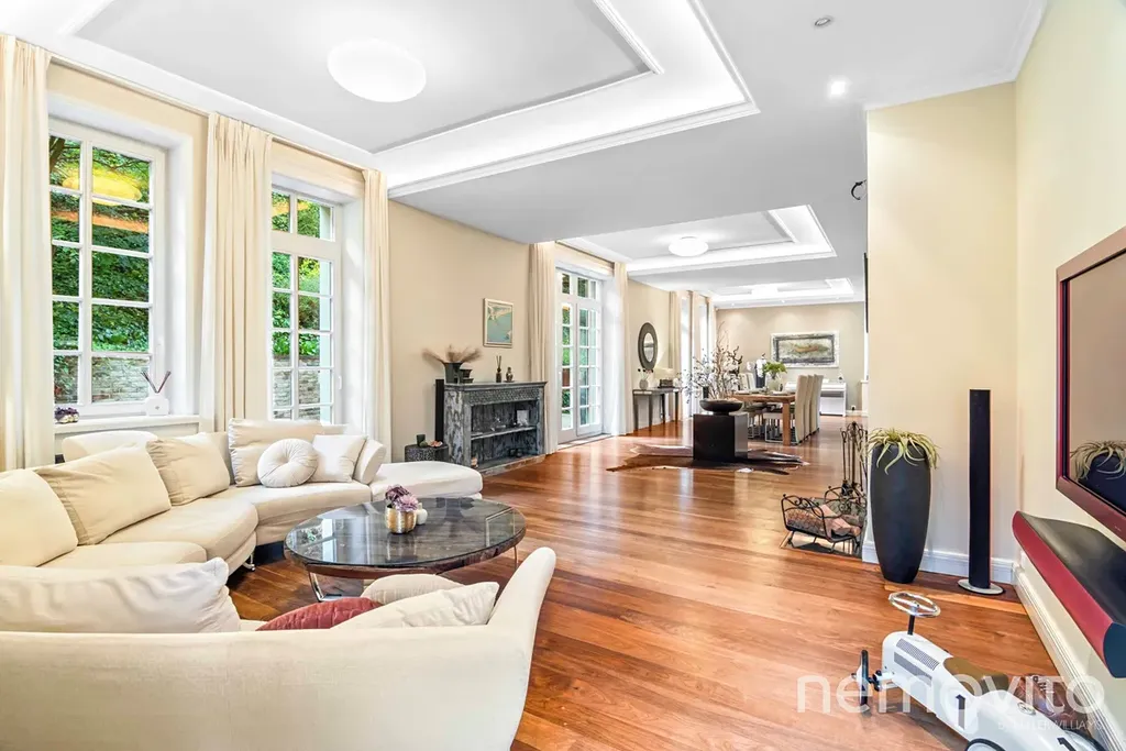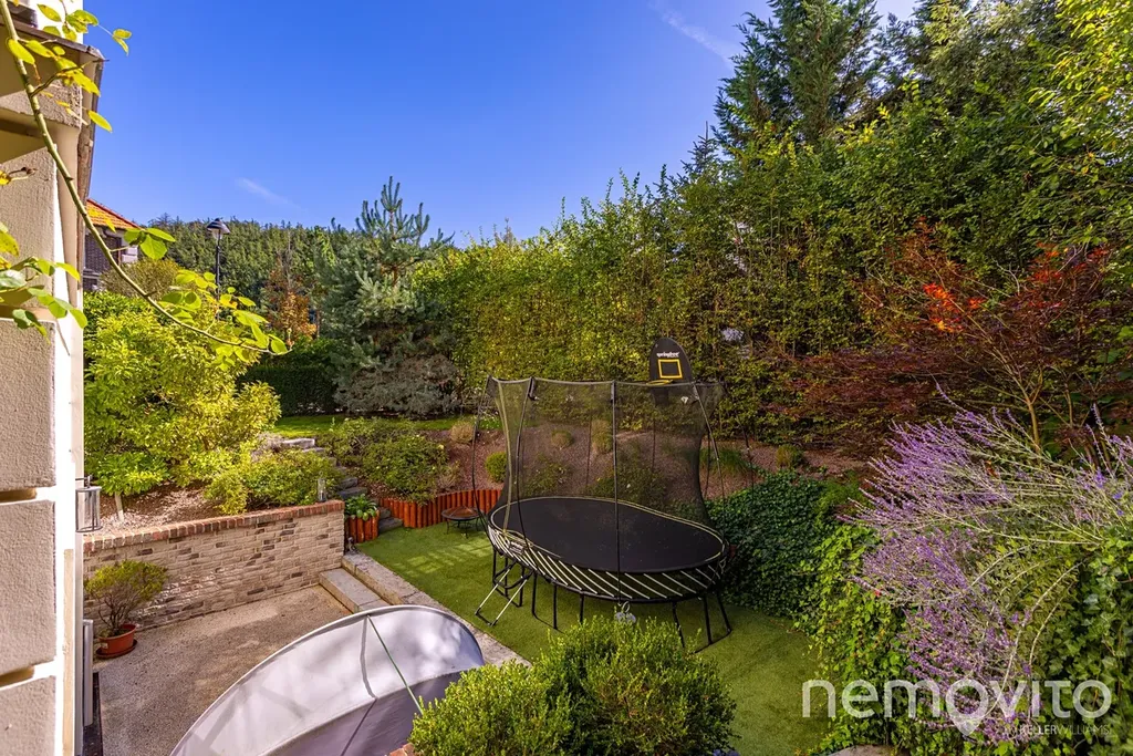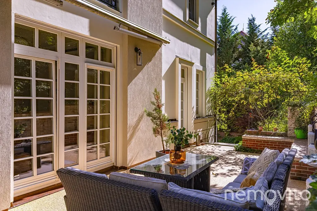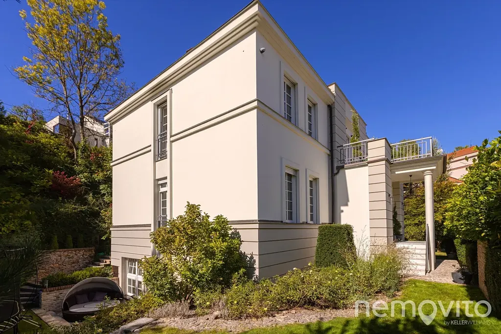 A representative villa (2006) in one of the most amazing places in the capital city, where there is stunning peace and quiet, yet only about 2 km to the metro. In a private and secure street surrounded by the greenery of the Sarecke valley, this generous building has an indoor pool and wellness facilities. The main highlight of this house lies in its unique location, which provides true peace and a top level security. Thanks to its setting and layout, the property is ideal both as a family residence and as an elegant home for embassies.
