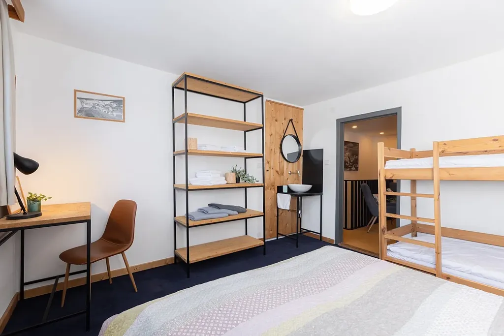 Obě části domu mají vlastní kuchyni i sociální zázemí, provoz pokojů tak nijak nezasahuje do provozu velkého apartmánu. V prvním podlaží pokojové části nechybí velká kuchyně, lyžárna nebo toalety. Přes společenskou místnost je pak přístup do horních pokojů, Ty mají k dispozici dvoje sociální zázemí, každý je pak vybaven umyvadlem přímo na pokoji. Celková kapacita je 20 lůžek. Za domem se nachází samostatně stojící mobilní sauna.