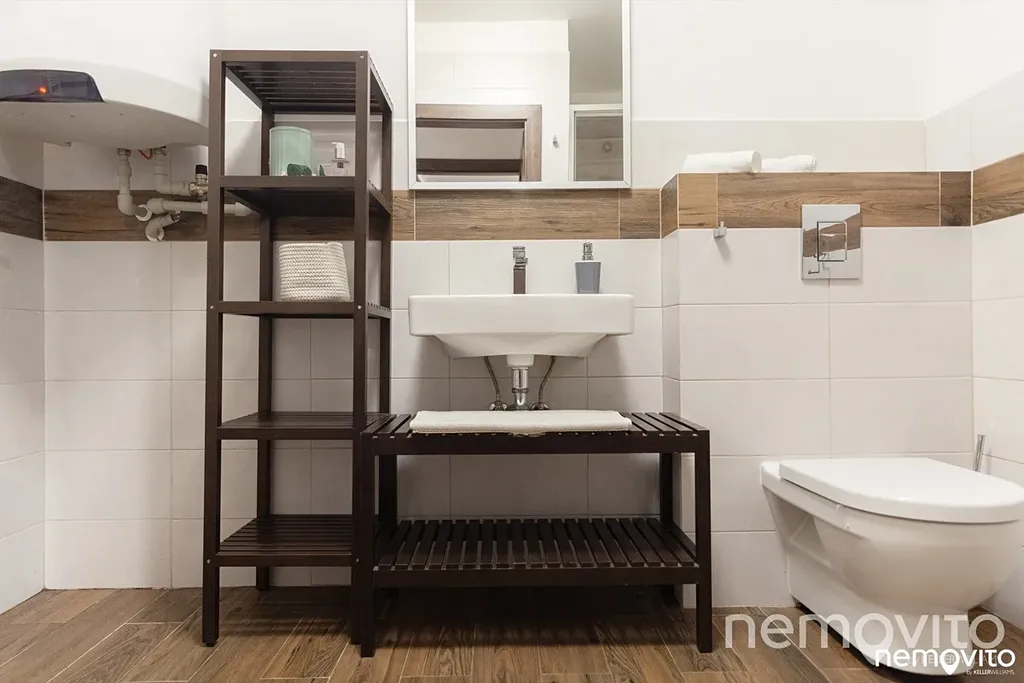 Koupelna s místem pro pračku i sušičku je vybavena sprchovým koutem. Přístup do prvního podlaží budovy je samostatný a oddělený od zbytku domu, ve kterém je celkem 31 apartmánů. Mimo příjezdu autem je dům dostupný lanovkou, která je 500 m po vrstevnici. Pokud vás o nabídce zajímá více informací, rád vám pošlu odkaz na web s plánky, prohlášením vlastníka a dalšími detaily. A mimochodem - všechny fotky v galerii jsou přímo z místa.