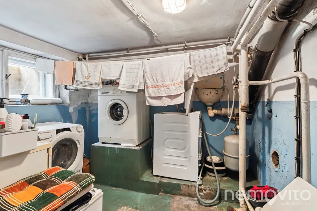 Dům aktuálně sestává ze sklepa se čtyřmi oddělenými místnostmi, z nichž jedna slouží jako prádelna. V prvním nadzemním podlaží je vstupní chodba, předsíň, koupelna, kuchyně a ložnice. Ve druhém nadzemním podlaží najdete další předsíň, sklad, průchozí pokoj a ložnici. V podkroví je oddělený sklad.