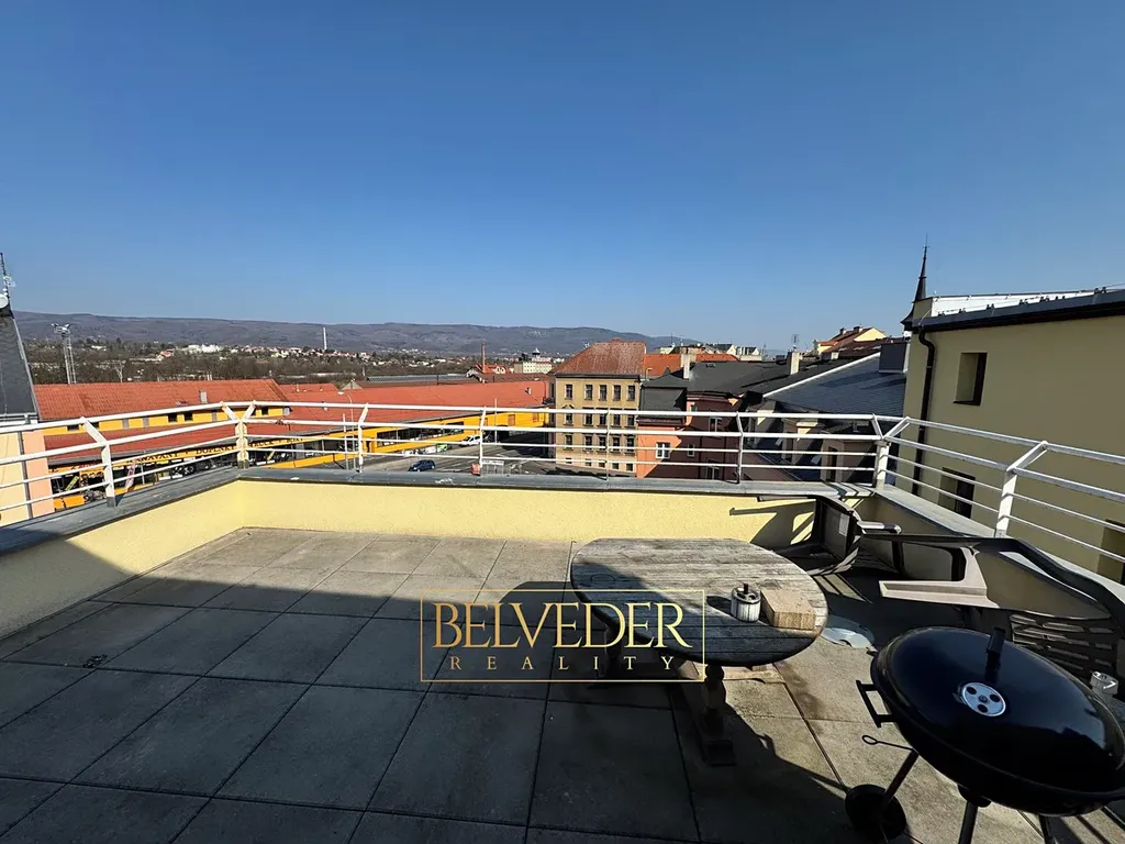 Velká terasa s výhledem: K bytu náleží možnost využívat prostornou společnou terasu na střeše domu. Je to ideální místo pro letní grilování s přáteli, opalování nebo vychutnávání panoramatického výhledu na Teplice.