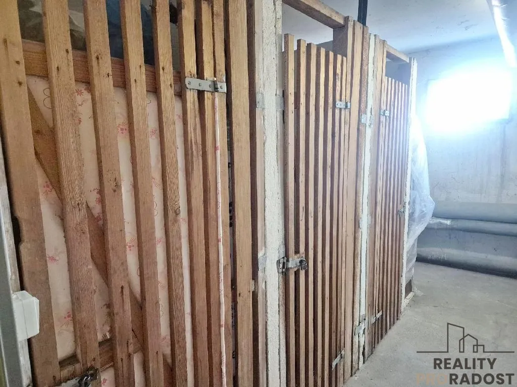 Dispozice: předsíň s vestavěnou stěnou, koupelna s vanou a umyvadlem + vstup na WC, ložnice s balkonem, obývací pokoj, ložnice, ložnice, kuchyně s jídelním koutem a spižírnou. K bytu náleží sklepní kóje. Vytápění je centrální – měřiče spotřeby tepla. Do bytu je zavedena elektřina, plyn, voda, kabel TV, internet. V sklepních prostorách je k dispozici mandlovna, sušárna, prádelna, kočárkárna.