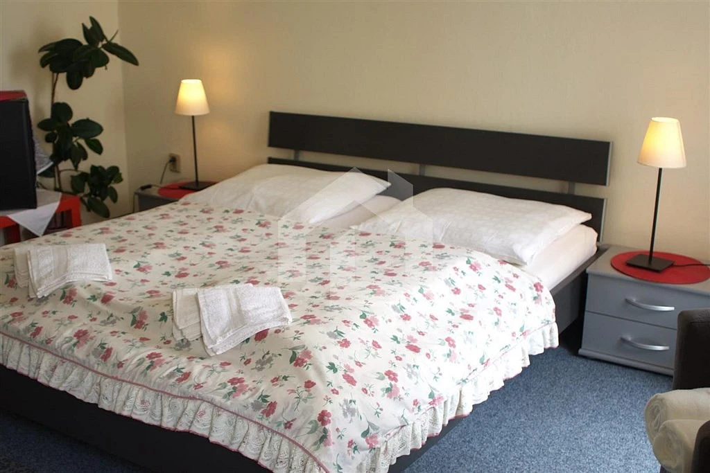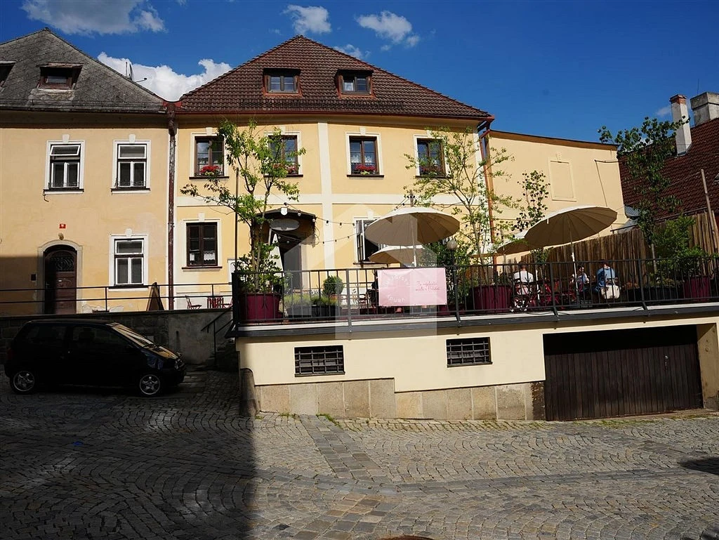 Prodej DOMU V KLIDNÉ ČÁSTI CENTRA JINDŘICHOVA HRADCE s prostornou garáží a terasou. HISTORICKÝ DŮM byl využíván jako PENZION se zavedenou cukrárnou. Při vstupu do domu vás uvítá vůně čerstvě připravených výrobků. Kromě cukrárny je v přízemí domu ještě kancelář, sociální zařízení pro provoz cukrárny a technické zázemí domu. V prvním patře se nacházejí 2 apartmány s vybavenou kuchyňkou a 3 další pokoje. Všechny pokoje i apartmány mají vlastní sociální zařízení. V podkroví je k dispozici prostorný byt. Venkovní slunná terasa je využívána hosty od jara do podzimu. Velkorysá garáž, která se nachází pod venkovní terasou, nabízí hostům zázemí pro motocykly a kola. Dům je vytápěn centrálním plynovým kotlem (podlahové topení v přízemí, radiátory v dalších podlažích). Ohřev vody je zajišťován elektrickým bojlerem. Nemovitost je nyní využívána jako krátkodobé ubytovací zařízení, nebytový prostor v přízemí pak jako cukrárna. Drobnými úpravami ji lze užívat také jako multifunkční dům, jak pro bydlení, tak pro podnikání se zázemím pro různé další služby (beauty salon, kadeřnictví, masáže, fyzioterapie atd. ).