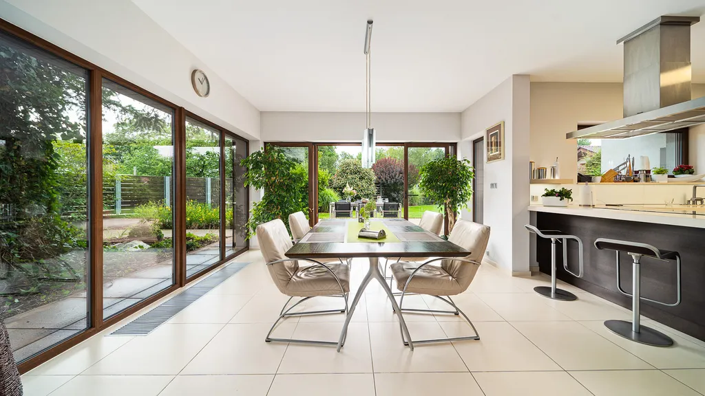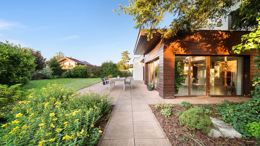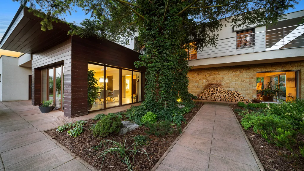 Každý člen vaší rodiny zde najde svůj malý kousek vesmíru. Propojení života s přírodou tady ucítíte všemi smysly. Jezírko se zvukem padající vody, stromy rostoucí do nebe, okouzlující výhledy z každé části domu ve vás vyvolají netradiční proud emocí a klidu.
