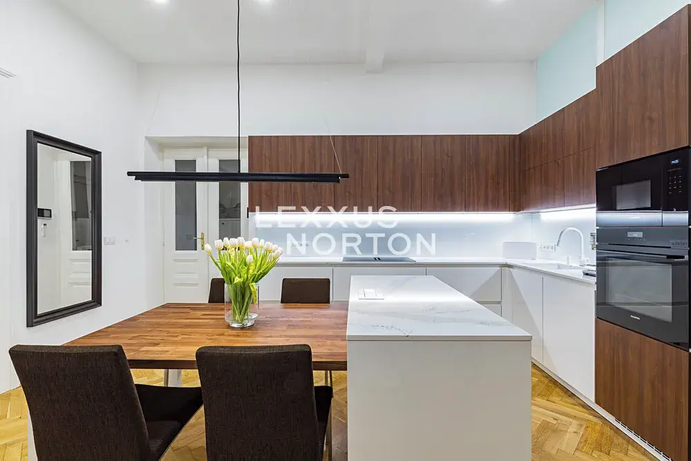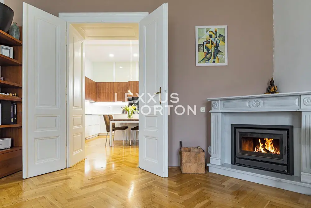 Byt prošel citlivou rekonstrukcí s důrazem na zachování původních architektonických prvků typických pro pražské měšťanské domy, doplněných o vysoký standard současného vybavení. Byt je nabízen plně zařízený a díky vysokým stropům působí mimořádně vzdušně a elegantně.