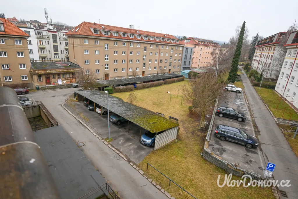Aktuálně má majitel bytu pronajato parkovací stání s přístřeškem od městské části Praha 6, které se nachází přímo za domem.