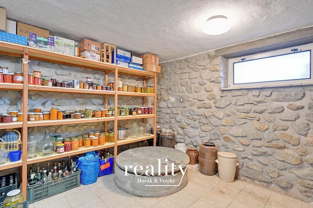 V suterénu se nachází prádelna se sprchou a saunou (nutná rekonstrukce), velký kamenný sklep, další místnost a velká garáž. Zahrada je rozdělena na relaxační část s bazénem, který vyžaduje také rekonstrukci a část užitkovou s ovocnými stromy. Domluvte si osobní prohlídku a poznejte kouzlo útulného, světlého, prostorného vesnického domu v současnosti vkusně zařízeném v moderním rustikálním stylu. Dům je vhodný pro větší rodinu, která chce bydlet v klidném zdravém prostředí blízko rakouských hranic a nedaleko většího města Znojma (10 min.). Vzdálenost do Brna (50 min.), do Vídně (1h 10 min). Ve vinařské obci Hodonice je dobrá infrastruktura - naleznete zde poštu, mateřskou školu, základní školu (v sousedních Tasovicích), knihovnu, zdravotní středisko, lékárnu, obchod. Doporučujeme!