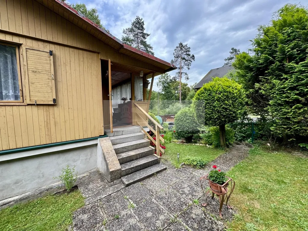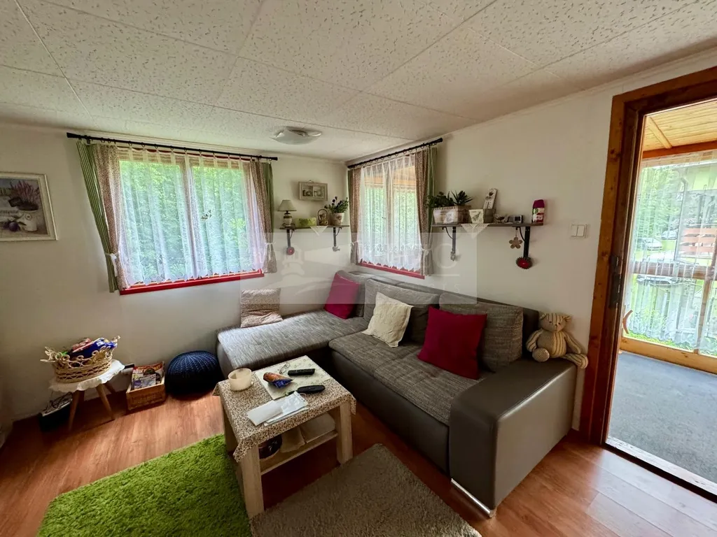 Vstupem na pečlivě udržovaný pozemek se v přízemí nachází zděná garáž a vedle ní praktická dílna. Toto zděné přízemí tvoří základ nadstandardní obytné části umístěné nad ním. Přes vstupní prosklenou verandu se vchází do prostorného obývacího pokoje, ze kterého je přímý přístup do plně vybavené kuchyně a koupelny s toaletou. Dále se nabízí další obytný pokoj momentálně určený k relaxaci, na který navazuje ložnice. Celý interiér je promyšleně prosvětlený a nabízí vysoký standard pohodlí.