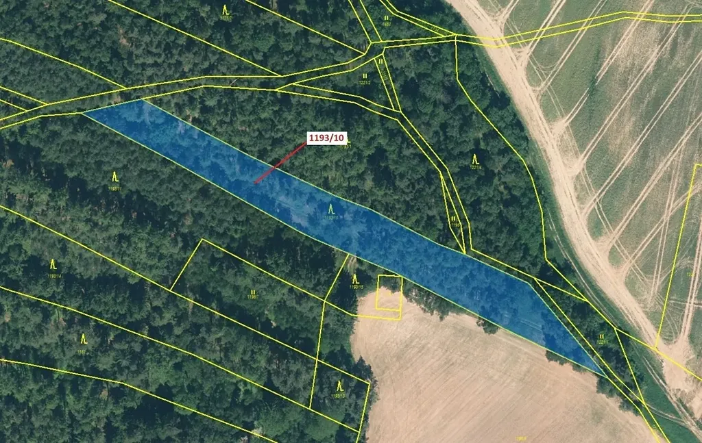 Lesní pozemek o výměře 4 694 m2, parcelní číslo 1193/10, podíl 1/1, katastrální území Podbořánky, obec Jesenice, obec s rozšířenou působností Rakovník, okres Rakovník, Středočeský kraj.