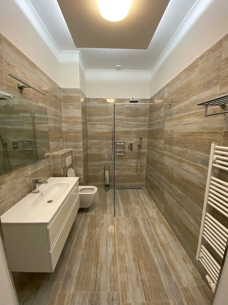 Z obývacího pokoje vstup do ložnice s výhledem na klidnou ulici, z prostorné chodby vstup do další ložnice (výhled do vnitrobloku). Designová koupelna se sprchou a toaletou.