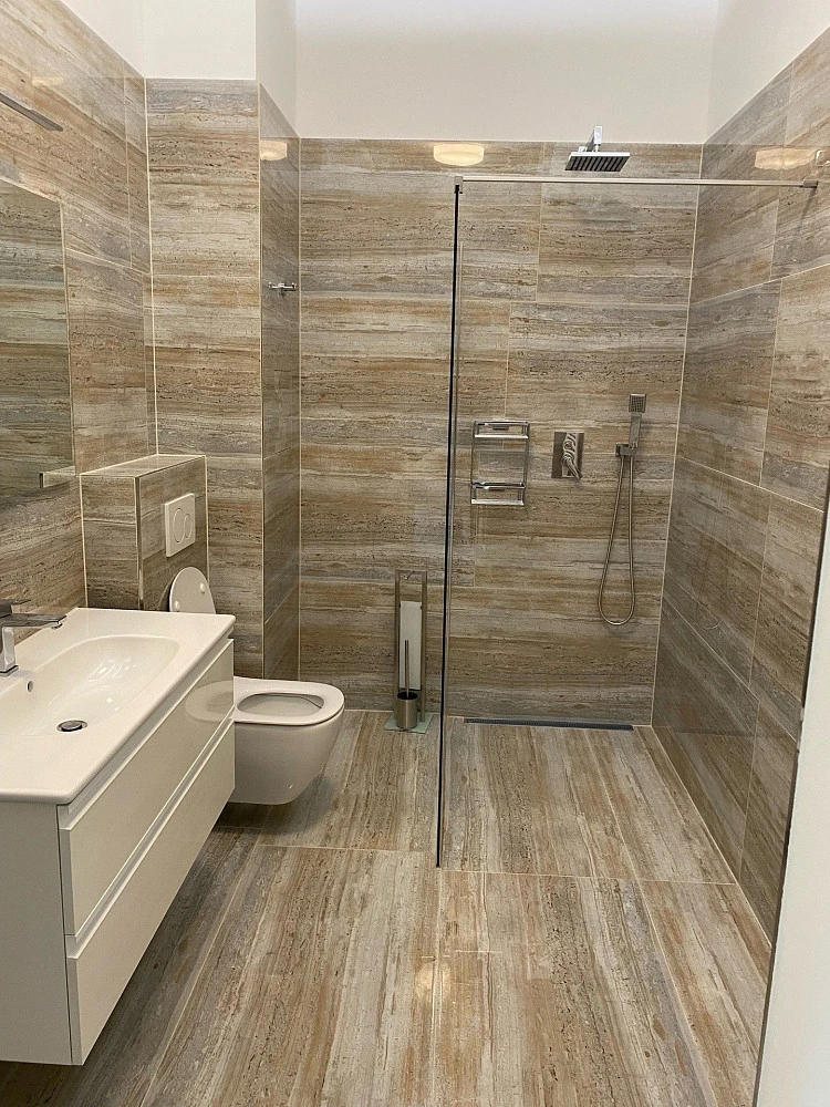 Vinylová podlaha a dlažba s vysokým leskem, nová špaletová okna.