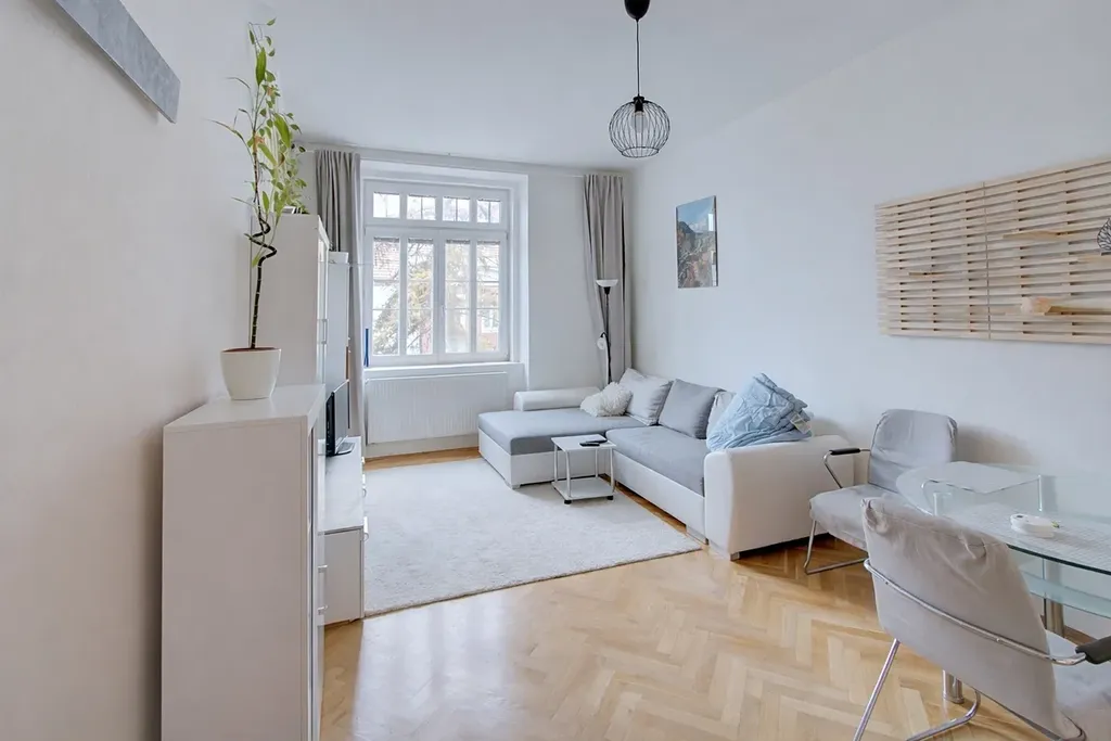 Byt prošel vkusnou rekonstrukcí a nabízí příjemnou kombinaci moderního vybavení a praktického uspořádání. Díky velkorysým místnostem působí velmi vzdušně a poskytuje dostatek prostoru jak pro jednotlivce, tak pro pár.
