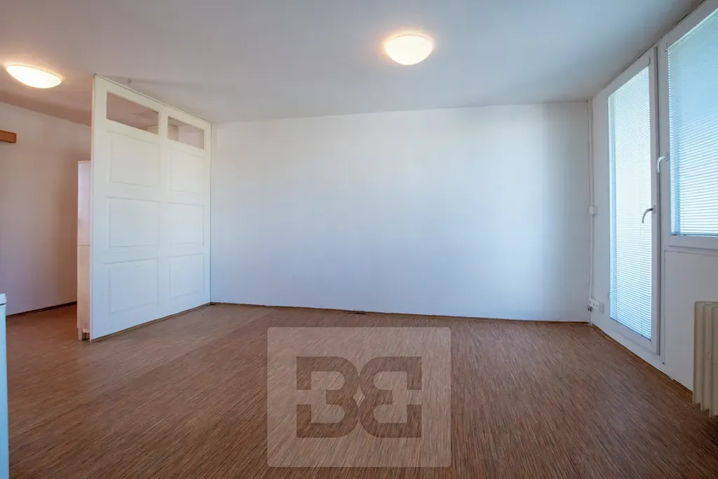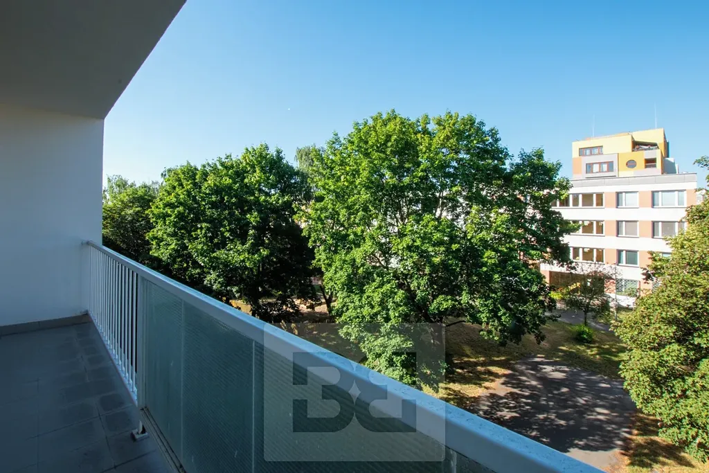 Byt se pronajímá jako nevybavený. Prostorný obývací pokoj nabízí dostatek místa pro obývací i jídelní část, je vybaven kuchyňskou linkou se spotřebiči a má přímý vstup na velký balkon. Ložnice je samostatná a velmi prostorná.