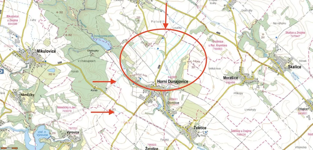 Nabízíme vám na prodej ornou půdu v katastru Horní Dunajovice v okrese města Znojma o celkové výměře 64.605 m2.