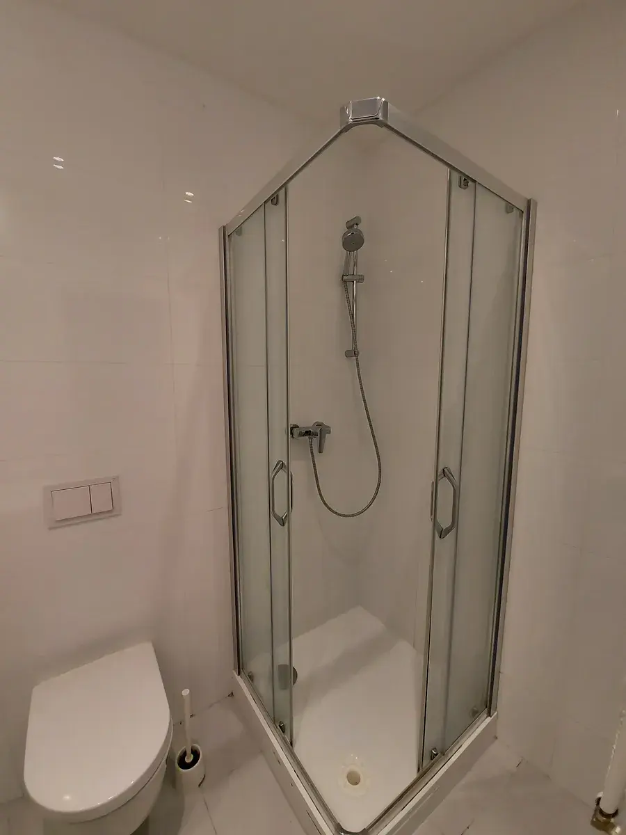 K dispozici je koupelna se sprchovým koutem, umyvadlem a toaletou.