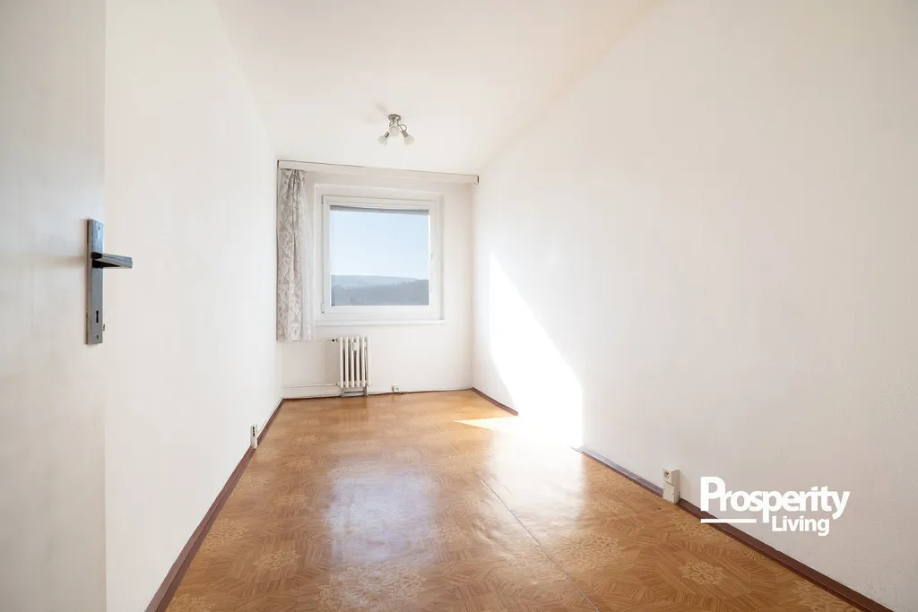 Dispoziční řešení bytu nabízí vstupní chodbu, prostorný obývací pokoj s kuchyňským koutem, ložnici a koupelnu s toaletou. Nabízený byt je v původním stavu, má umakartové bytové jádro, plastová okna se žaluziemi. Podlahovou krytinu tvoří linoleum. Velmi nízké měsíční náklady, lze získat na prohlídce. K bytu náleží sklepní kóje.