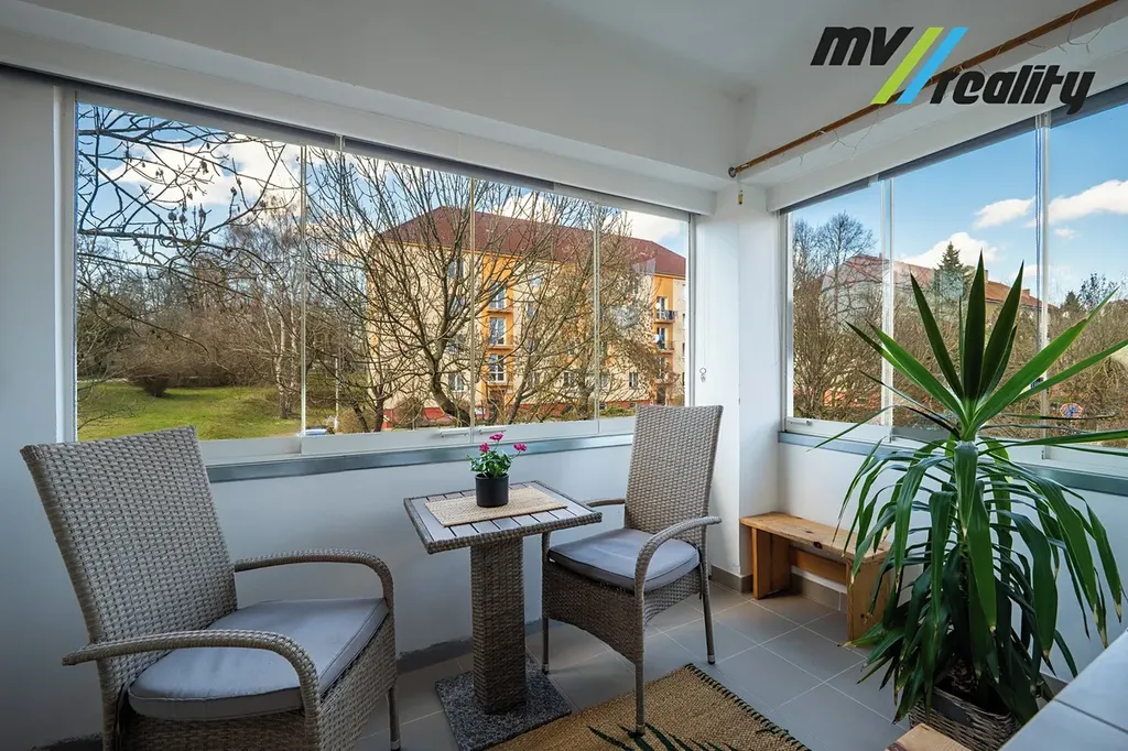Velkým benefitem je prostorný zasklený balkon o velikosti 6,32 m², který poskytuje příjemné místo pro relaxaci po celý rok. Dispozice bytu je prakticky řešená: vstupní chodba odděluje obytný prostor, kde se nachází kuchyňský kout se zabudovanou lednicí. Koupelna je osazena vanou doplněnou o sprchovou boční stěnu a WC. Nechybí ani komora, která nabízí vítaný úložný prostor.