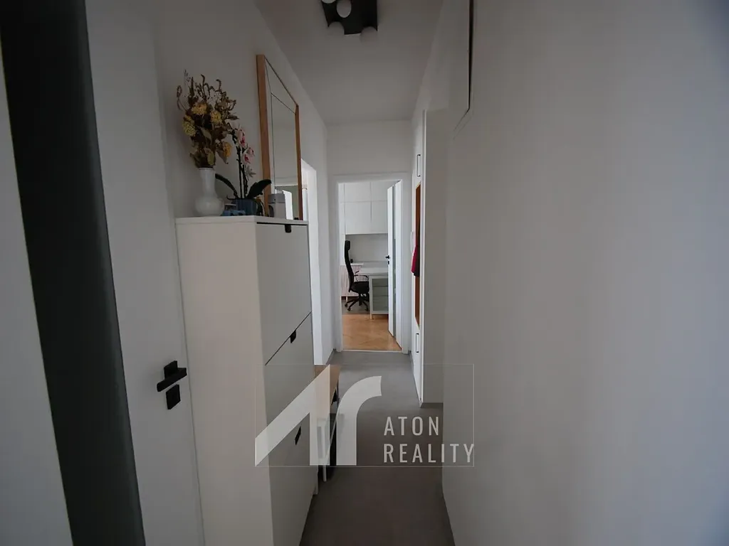 Jednotka se skládá z prostorného obývacího pokoje, který je chytře řešený i jako pracovna, kuchyně za kterou se nachází krásná koupelna s prostorným sprchovým koutem, a samostatnou toaletou. Dispoziční řešení se samostatnou kuchyní a dvěma neprůchozími pokoji zajišťuje dostatek soukromí a pohodlí.
