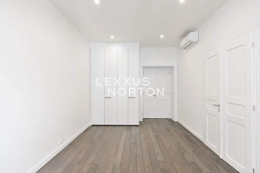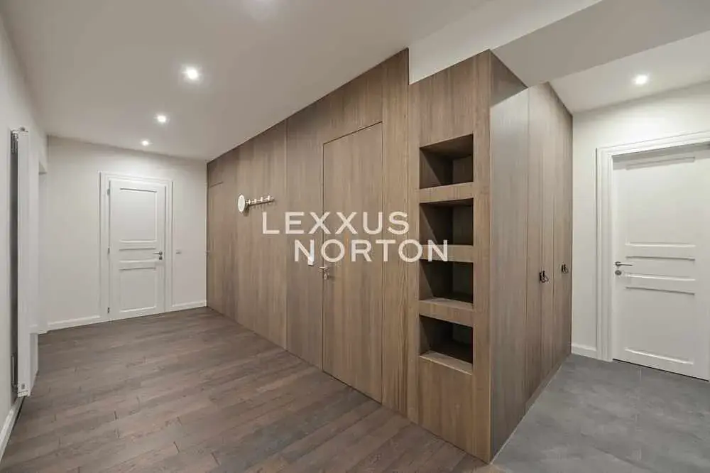 Vstupní hala nabízí nadstandardní množství úložných prostor. Kuchyňský kout je plně vybaven spotřebiči – sporákem, troubou, lednicí s mrazákem, myčkou nádobí a mikrovlnnou troubou. Ložnice jsou vybaveny vestavěnými skříněmi. Byt disponuje dvěma koupelnami – jedna je s vanou a bidetem, druhá se sprchovým koutem a bidetem. Součástí vybavení bytu je také klimatizace, pračka a sušička. K bytu náleží sklep.