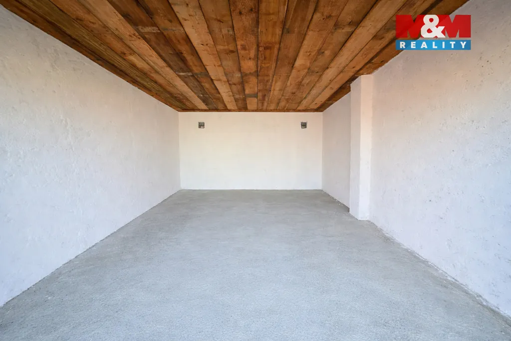 Garáž o rozměrech 3,8 × 5,0 m disponuje vraty (šířka 2,45 m, výška 2,06 m), která umožňují pohodlný vjezd i většímu vozu. Je suchá, čistá, nově vymalovaná a má nový dřevěný strop – bez nutnosti dalších investic.