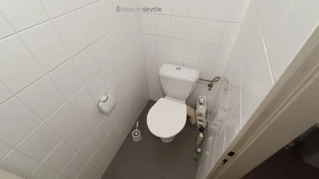 Topení je ústřední dálkové, ohřev vody před elektrický průtokový ohřívač. Sociální zařízení je situováno do zadního části prostoru, kde je samostatné WC (1,48 m2) a kuchyňka (4 m2). Před domem i v těsné blízkosti domu je parkoviště. Prostor je vhodné využít jako obchod, kancelář či provozovna služeb.