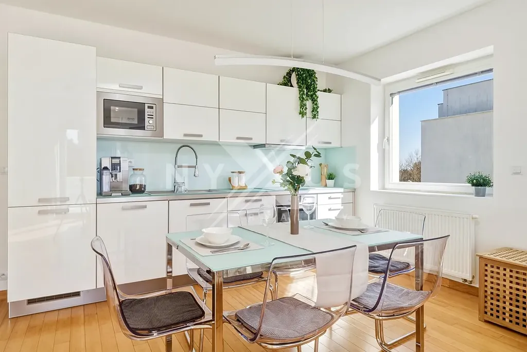 Velkým benefitem je orientace na tři světové strany, díky které je byt krásně prosvětlený po celý den a působí velmi příjemným, harmonickým dojmem. Kvalitní materiály včetně bambusových podlah podtrhují moderní charakter interiéru. Samozřejmostí je centrální vytápění a vysokorychlostní internet.