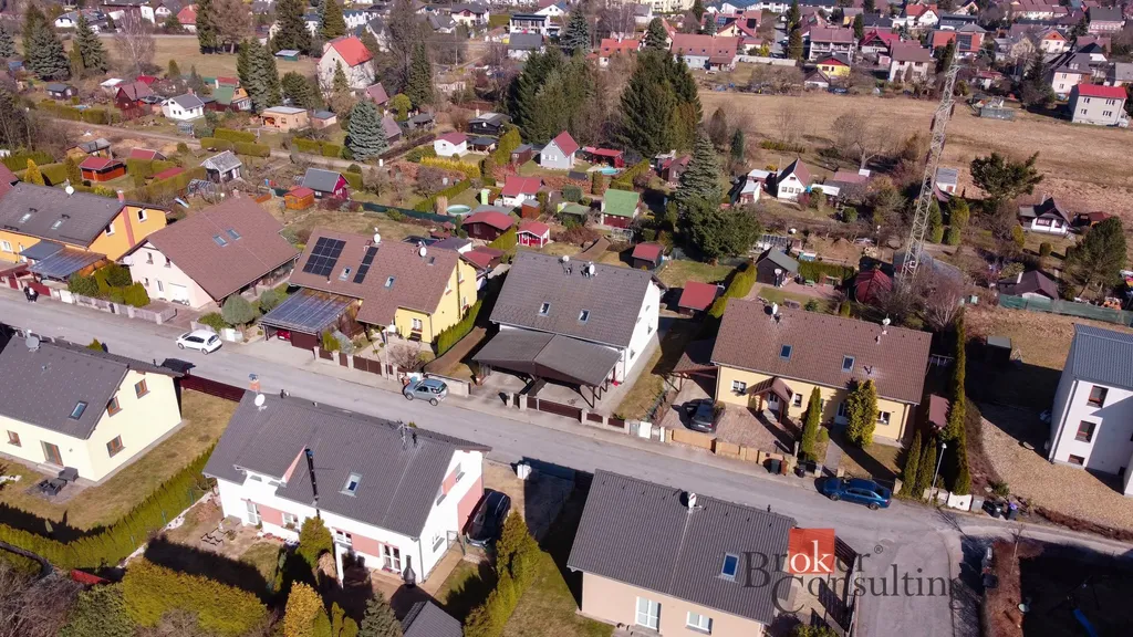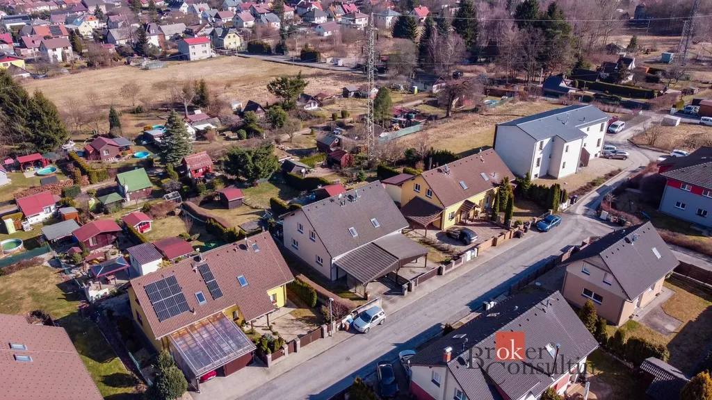 Dům tvoří levou polovinu dvojdomu, přičemž funguje jako plnohodnotná samostatná nemovitost s vlastním pozemkem a dostatkem soukromí. Velkou předností je jedinečná poloha – z jedné strany domu se otevírá výhled na dominantu regionu Ještěd, ze zahrady pak na panorama Liberce a okolních kopců.
