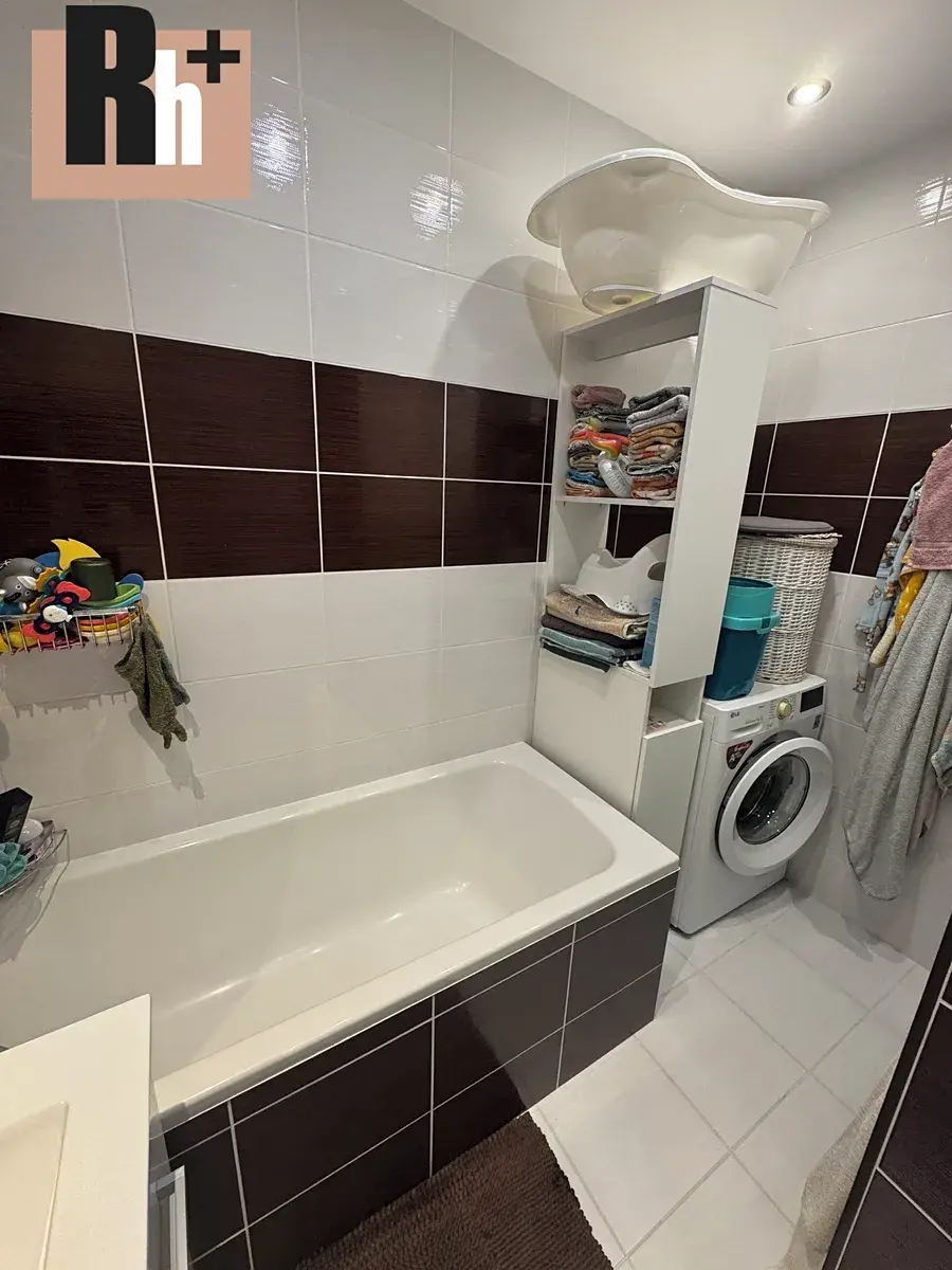 Součástí bytu je nová kuchyňská linka včetně spotřebičů. Koupelna s vanou, umyvadlem i s dostatkem místa pro pračku a sušičku. V koupelně i na WC jsou sádrokartonové podhledy s bodovým osvětlením, které dodávají prostoru moderní vzhled. Vstup do obou pokojů je samostatný. V ložnici (aktuálně využívané jako dětský pokoj) je prakticky vybudovaná šatna, která poskytuje úžasný úložný prostor. V chodbě jsou vestavěné skříně. Z lodžie o výměře cca 4,5 m² je výhled na dětské hříště a zeleň.