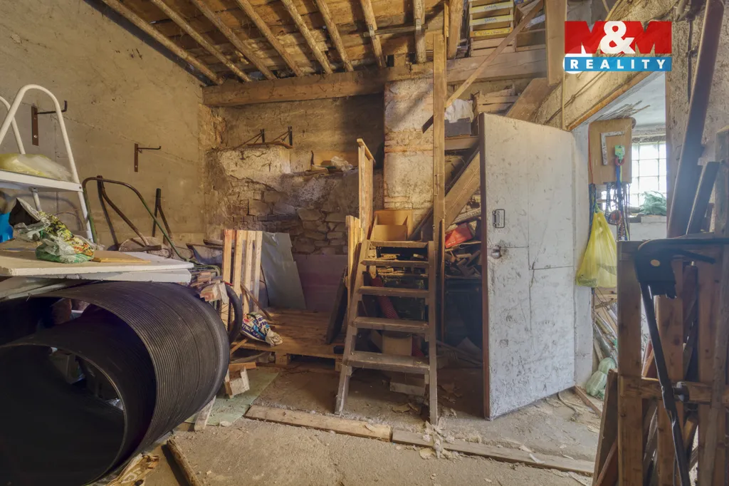 Součástí prodeje je také samostatný vedlejší objekt – výměnek s vlastní kuchyní, obytným pokojem, koupelnou a WC. K objektu náleží garáž, sklad, sklep na ovoce a zeleninu a technická místnost s kotlem na tuhá paliva. V podkroví je připraven prostor pro vybudování další obytné jednotky.