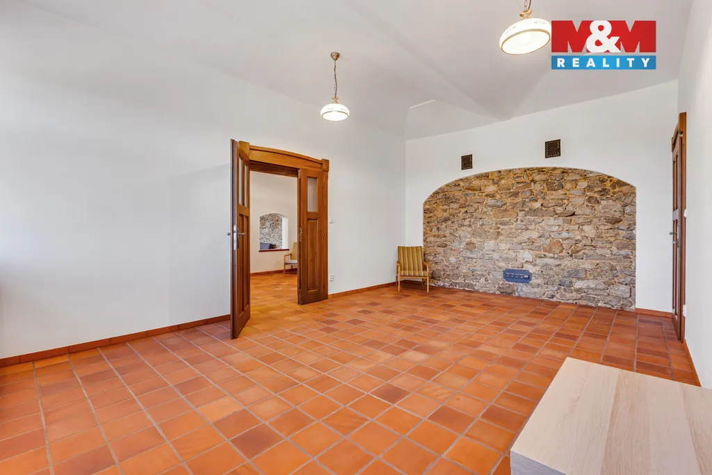 Nabízíme k prodeji kompletně zrekonstruovaný dům v obci Vysoký Újezd - část Kozolupy, v atraktivní lokalitě nedaleko Prahy. Nemovitost se nachází v blízkosti hradu Karlštejn a prestižního golfového areálu Albatross, v klidném prostředí s výbornou dostupností do hlavního města. V obci je také michelinská restaurace Papilio. Dům disponuje užitnou plochou 332 m² a klenutými sklepy o velikosti 59 m². Je vhodný jak pro komfortní vícegenerační bydlení, tak i jako reprezentativní sídlo firmy. Veškeré inženýrské sítě jsou zavedeny. Součástí je rozlehlý a plně oplocený pozemek o velikosti 10 057 m² s udržovanou zahradou a velkým zahradním domkem. Nemovitost nabízí také výrazný investiční potenciál díky možnosti budoucího dělení pozemku. U některých prostor jsou mezi fotografiemi uvedeny také vizualizace pro lepší představu o jejich možném využití. Pokud vás dům zaujal, neváhejte kontaktovat makléře a ten vám dům rád osobně ukáže.