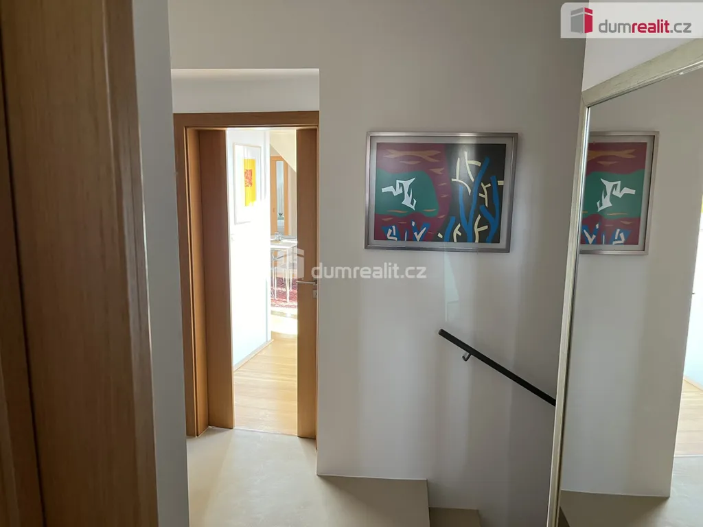 Další pokoj je přístupný z předsíně kdy se po schodech vchází do otevřeného prostoru s výrazným oknem, prostorný pokoj, který rozdělen na část s pracovnou a knihovnou a dále na další ložnici. V této části bytu je k dispozici druhá koupelna se sprchovým koutem, umyvadlem a toaletou.