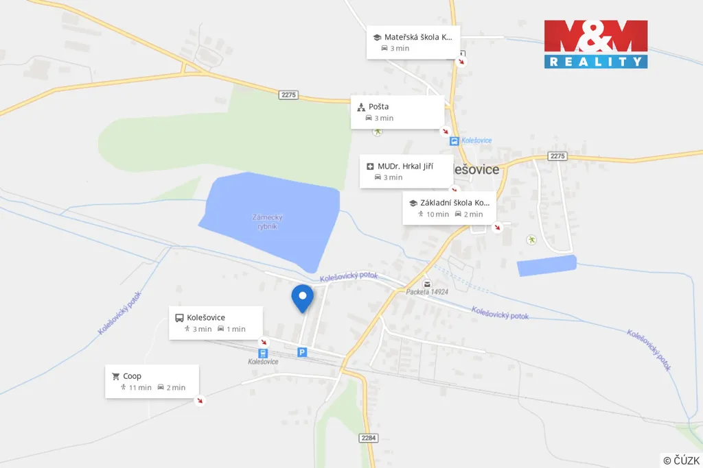 Dovoluji si Vám nabídnout patrový domek s pozemkem 484 m2 v obci Kolešovice. Dům je určený k rekonstrukci, je podsklepený, součástí je také garáž o velikosti 30 m2. Na zahradě je posezení, skleník, a udržovaná zahrada s ovocnými stromy a keři. V přízemí je chodba, kuchyně, obývací pokoj, ložnice a prostorná koupelna s toaletou. Dům má druhý vchod, tudy vede schodiště na půdu, kde si můžete dodělat 2 pokoje. Nemovitost je připojena na veřejný vodovod, kanalizaci, elektřinu, také je tu studna a přivedený plyn na hranici pozemku. Stavba je cihlová, na střeše pálené tašky, podlahy jsou betonové, proběhla zde výměna oken za eurookna, také voda a odpad jsou v plastu. Vytápět můžete el. kotlem, či na pevná paliva. Parkovat můžete na pozemku nebo v garáži. Zahrada je stavební parcelou, můžete zde dále stavět. V obci je veškerá občanská vybavenost s dobrou dostupností do Rakovníka. Dům je ihned k nastěhování. Na tuto nemovitost je možné čerpat státní dotaci ve výši až 936 689,- Kč.