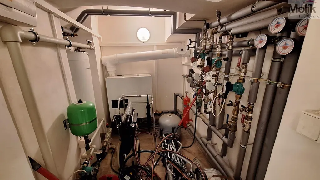 Vytápění a ohřev vody pomocí plynového kotle, v bytech je k dispozici klimatizace, cena je včetně vybavením domu, nyní je dům prázdný.