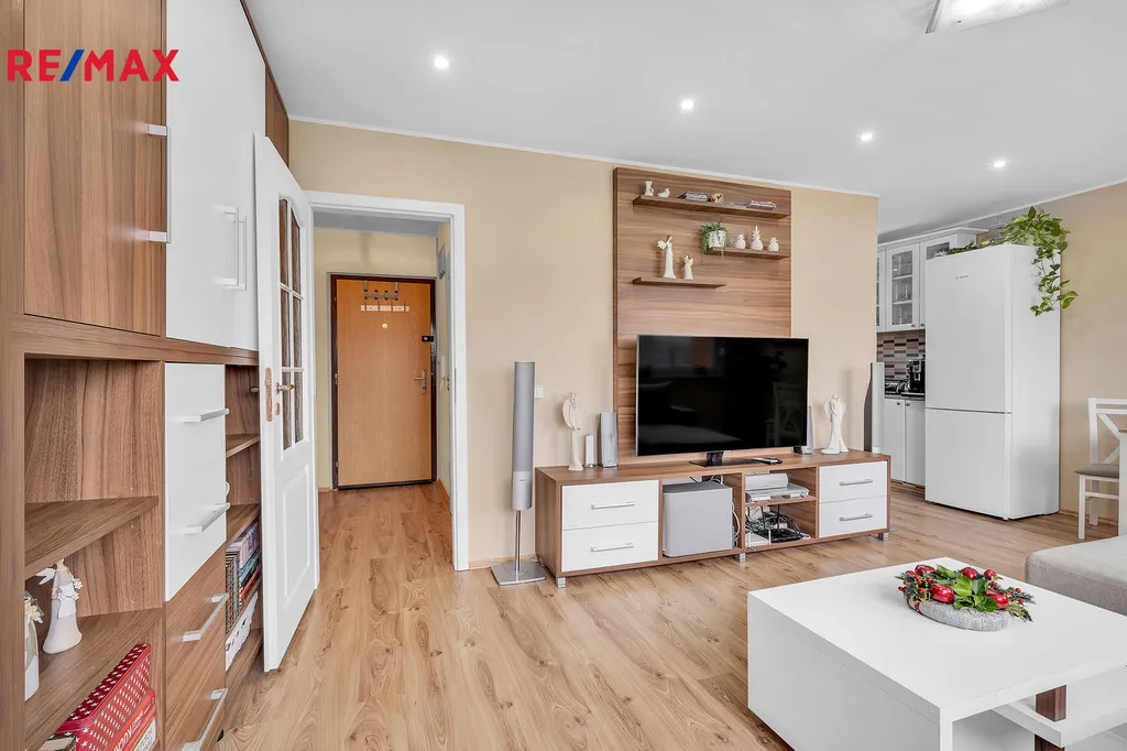 Byt se nachází ve 4. nadzemním podlaží revitalizovaného panelového domu s výtahem. Dispozičně je řešený jako 1+kk.