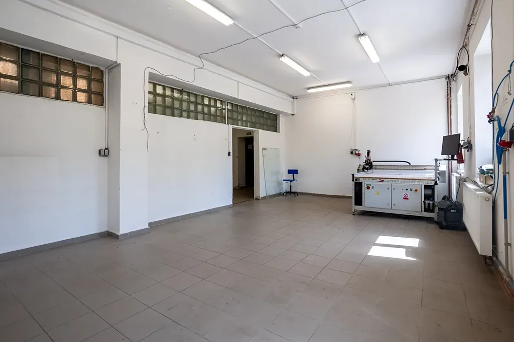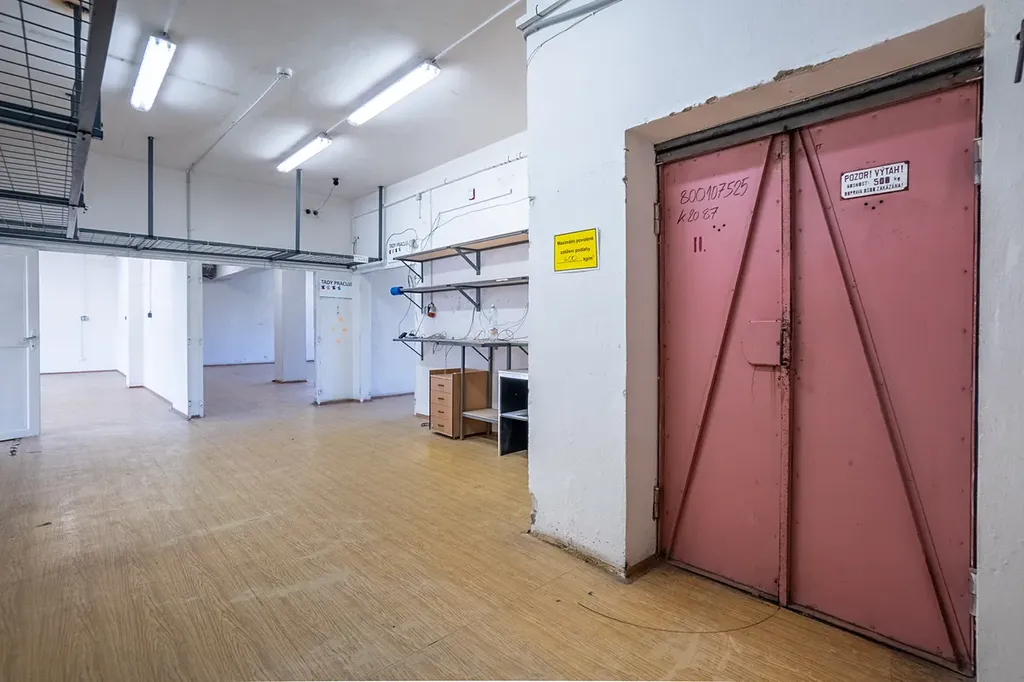 Vstup do budovy přes sekční vrata, dále přes schodiště do celého objektu. Funkční nákladní výtah propojující všechna podlaží. K dispozici rovněž krytý sklad.