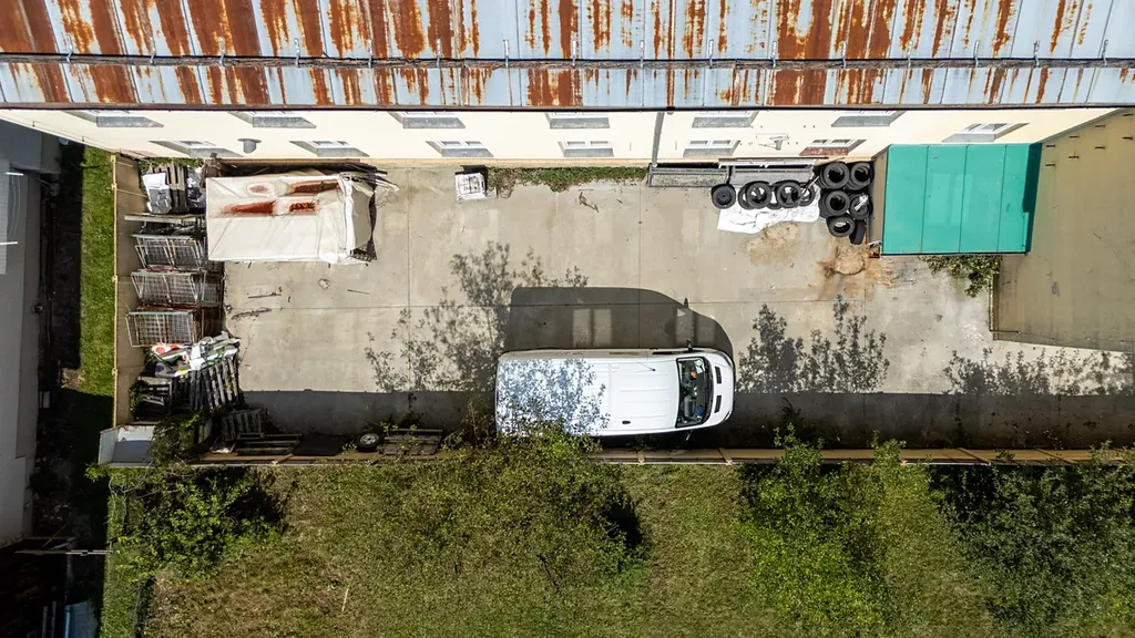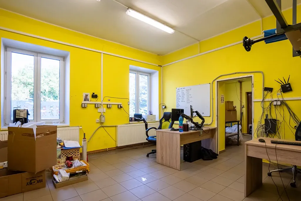 Další vstup do objektu je řešen z prostoru nákladní rampy přes dvoukřídlé dveře nebo kancelářských kontejnerů. Rozdělení podlaží pomocí nenosných příček lze vybourat.