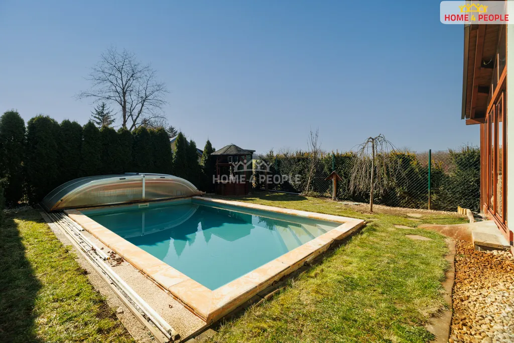 Na pozemku se nachází krytý zděný bazén se slanou vodou, osvětlením a zastřešením, dále pergola s posezením, sklep s mrazákem a dva zahradní domky (jeden domek je zateplený s elektřinou). Parkování je zajištěno přímo na pozemku pro dvě vozidla.