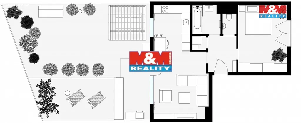 Tento krásný byt se pyšní prostornou terasou (72,5 m²) se zahradou, ideální pro relaxaci či rodinné grilování. Vstup na terasu přímo z obývacího pokoje – užijte si krásné výhledy a pohodlný přístup k zelené oáze. Plně vybavený – stačí se nastěhovat a užívat si!