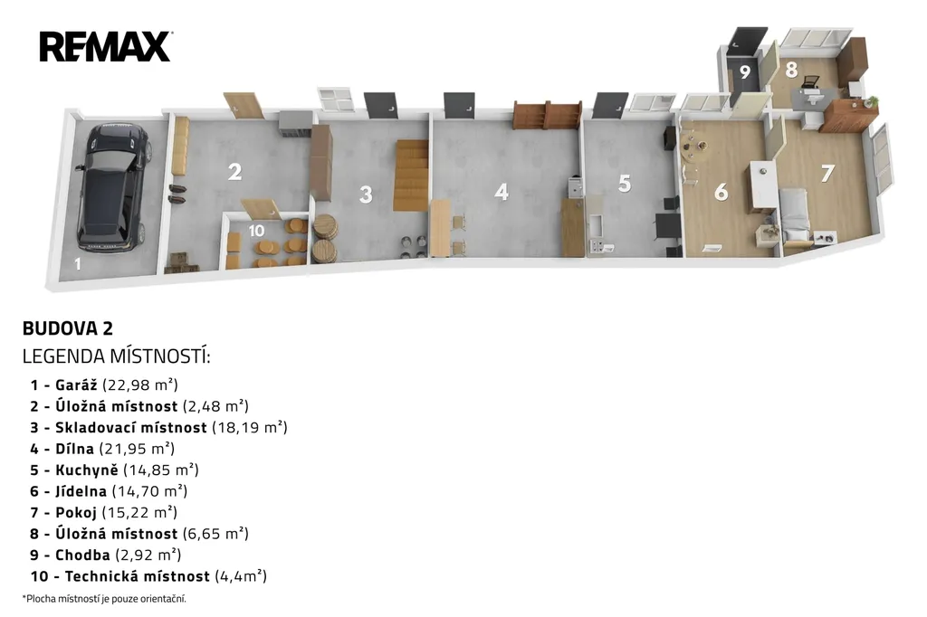 Celkem 415 m² užitné plochy s možností výrazného rozšíření – ideální pro vícegenerační rodinu, investora nebo projekt s ubytovací kapacitou.