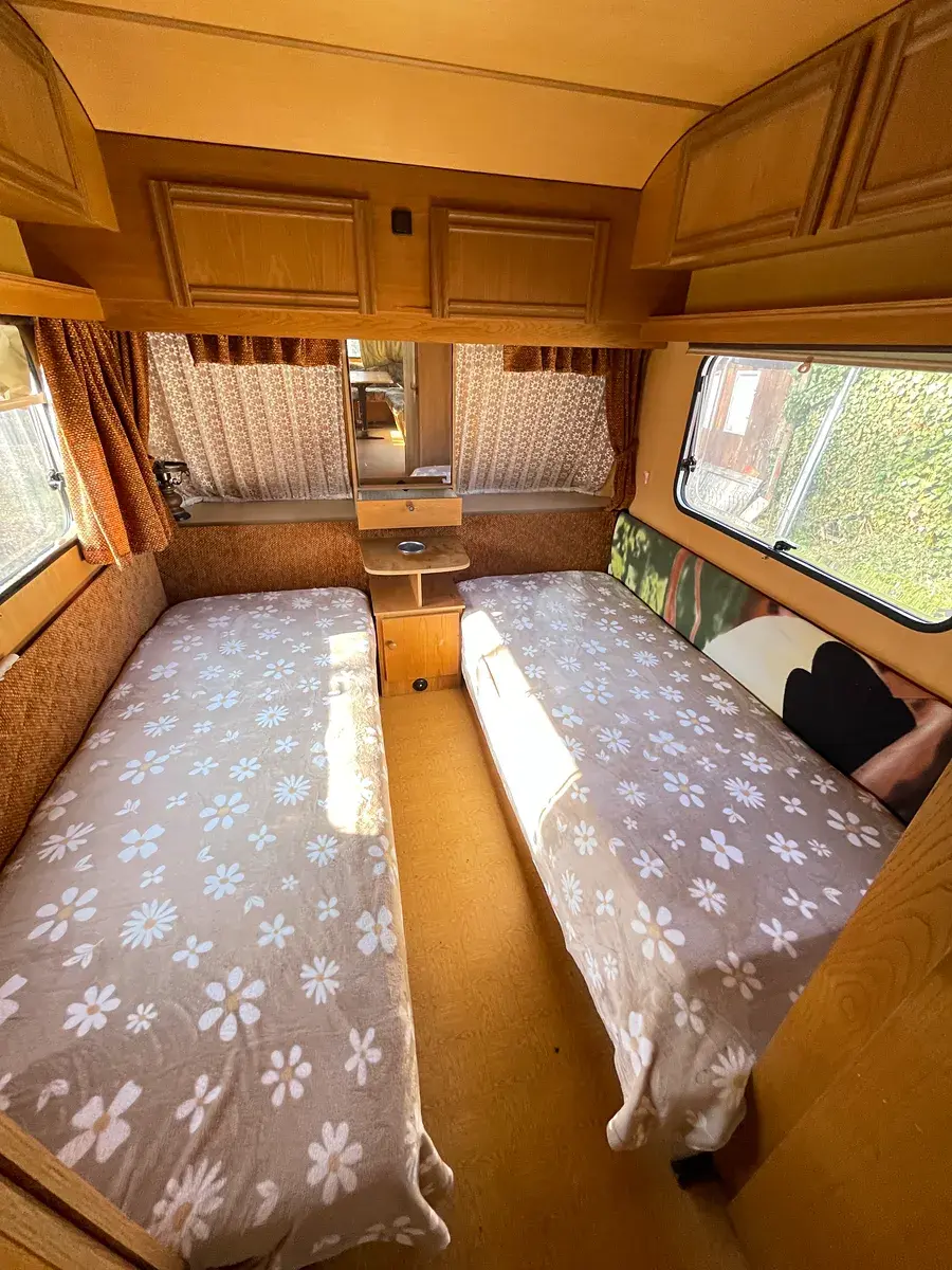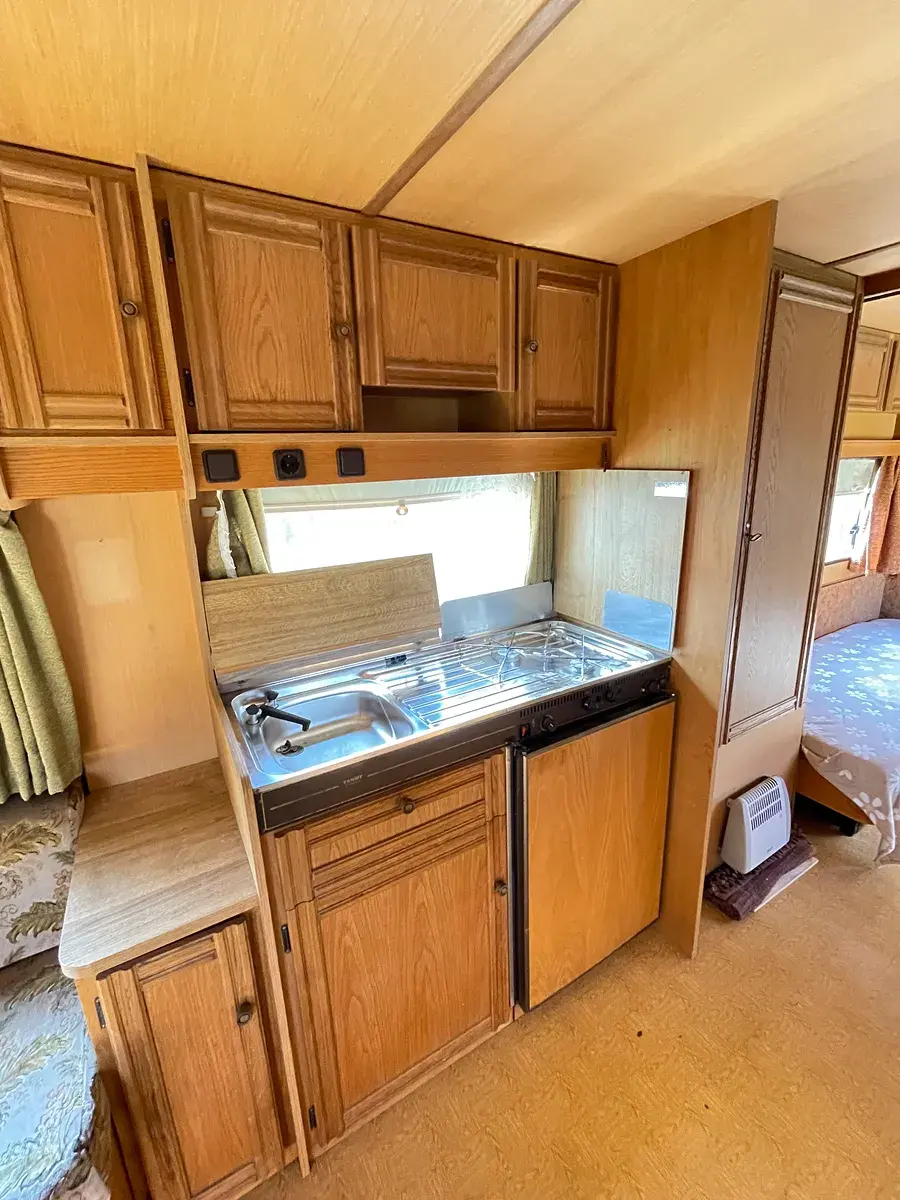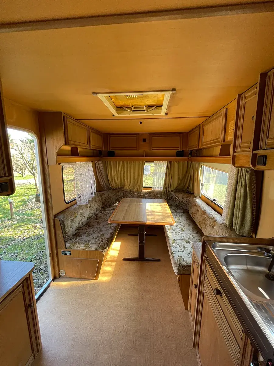 Součástí prodeje je menší chatka a stylově zařízený karavan, které poskytují skvělé zázemí.