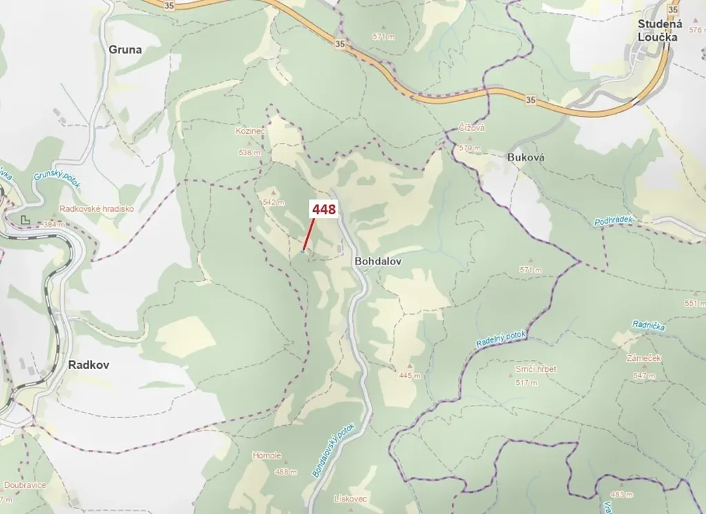 Lesní pozemek o výměře 586 m2, parcelní číslo 448, podíl 1/1, katastrální území Bohdalov u Městečka Trnávky, obec Městečko Trnávka, obec s rozšířenou působností Moravská Třebová, okres Svitavy, Pardubický kraj.