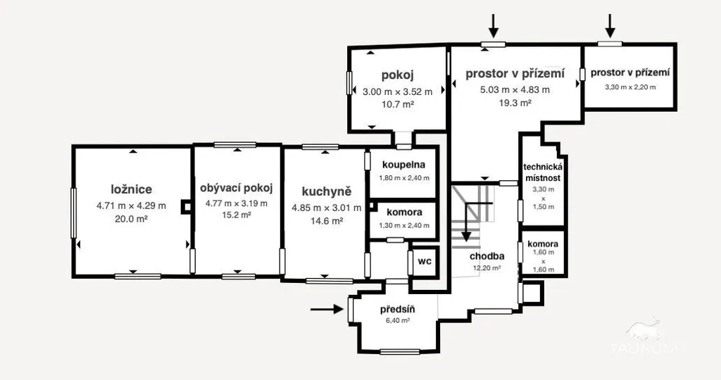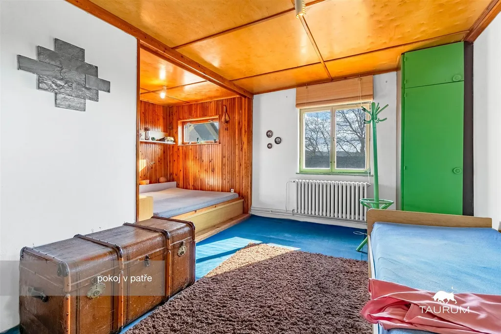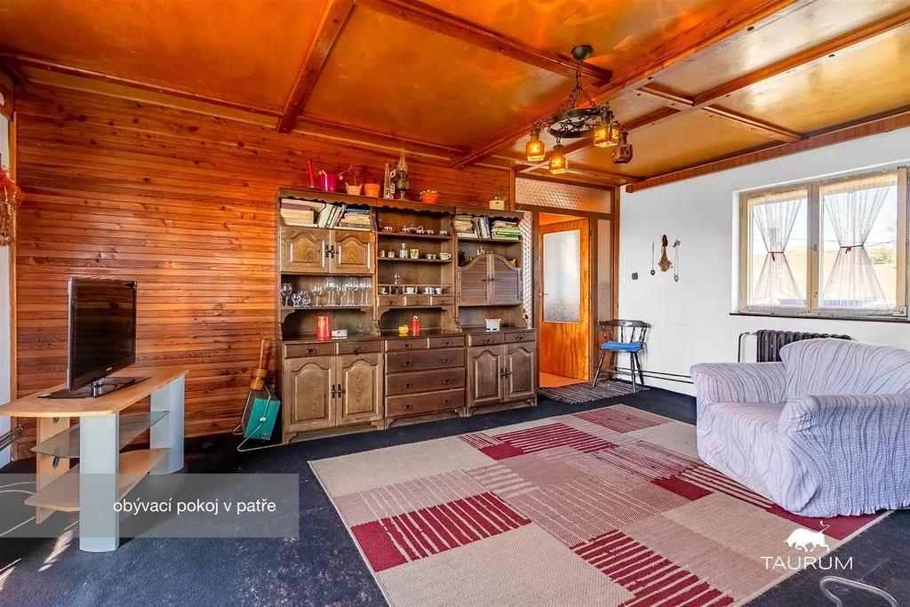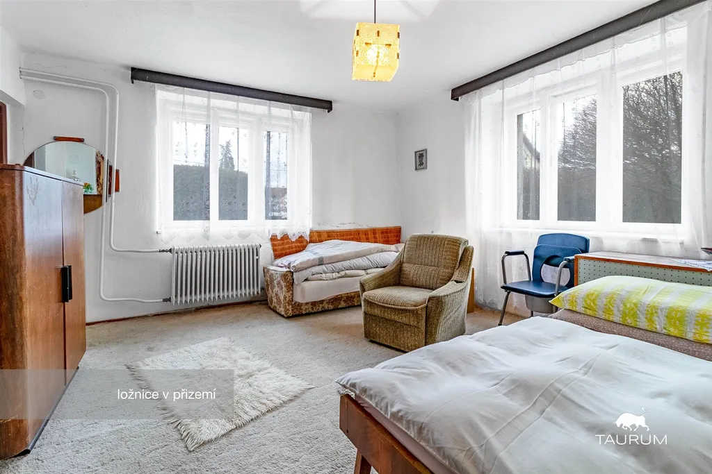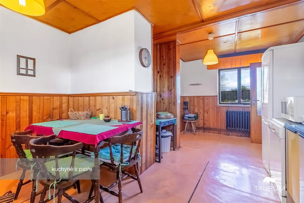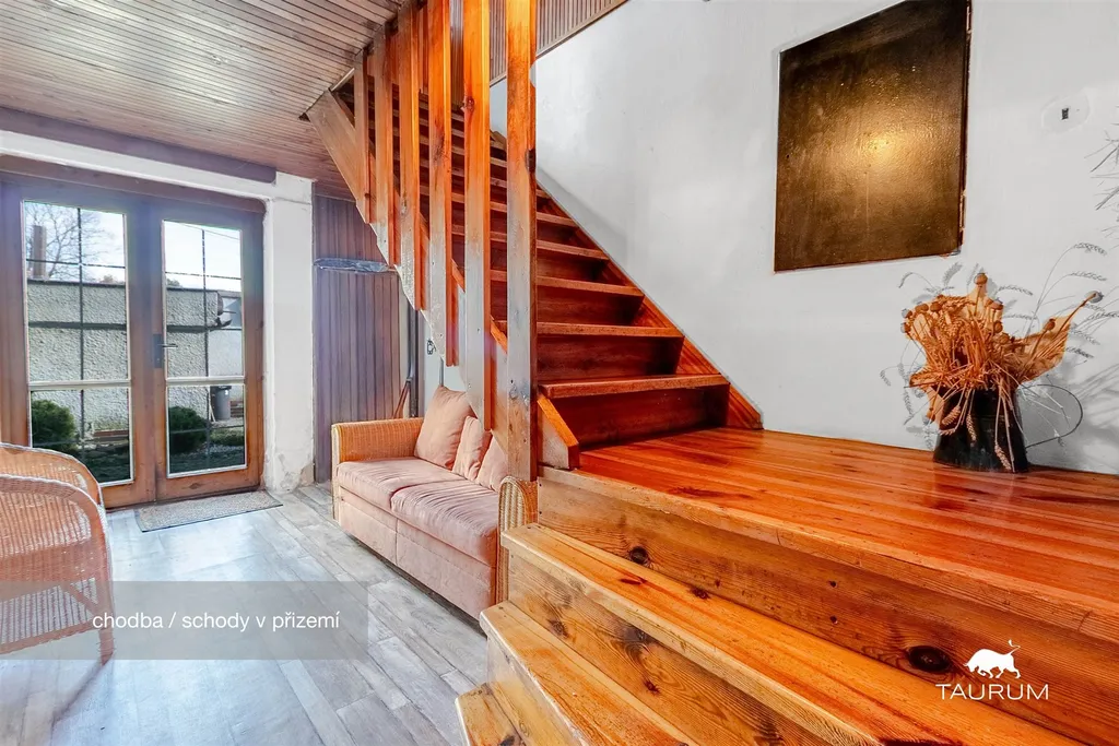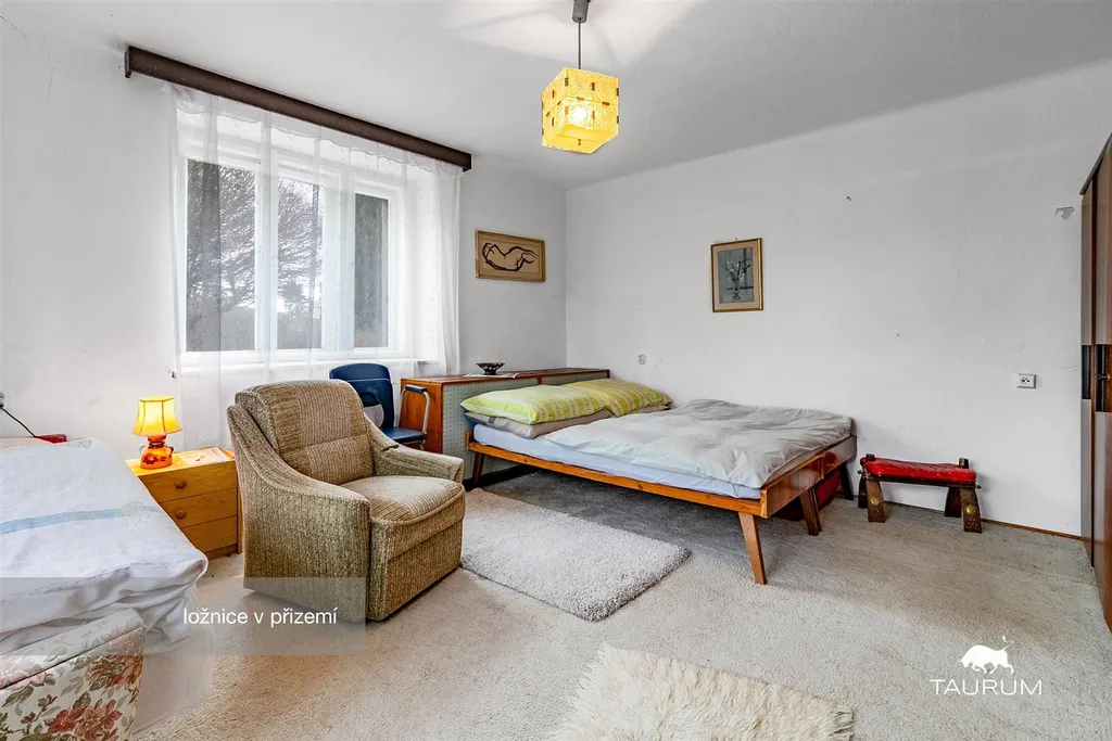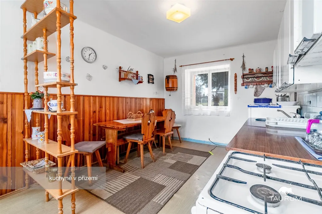 V přízemí jsou 2 obytné pokoje, kuchyň, koupelna, 3 komory, technická místnost s kotlem, a 3 další místnosti, které nabízí různé využití jako například sklad, dílna, pracovna apod…