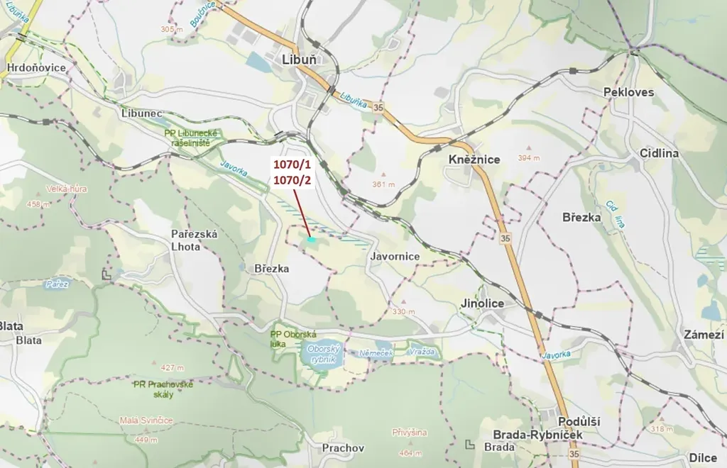Lesní pozemky o výměře 2271 m2, parcelní čísla 1070/1, 1070/2, podíl 1/1, katastrální území Kněžnice, obec Kněžnice, obec s rozšířenou působností Jičín, okres Jičín, Královéhradecký kraj. Po těžbě.